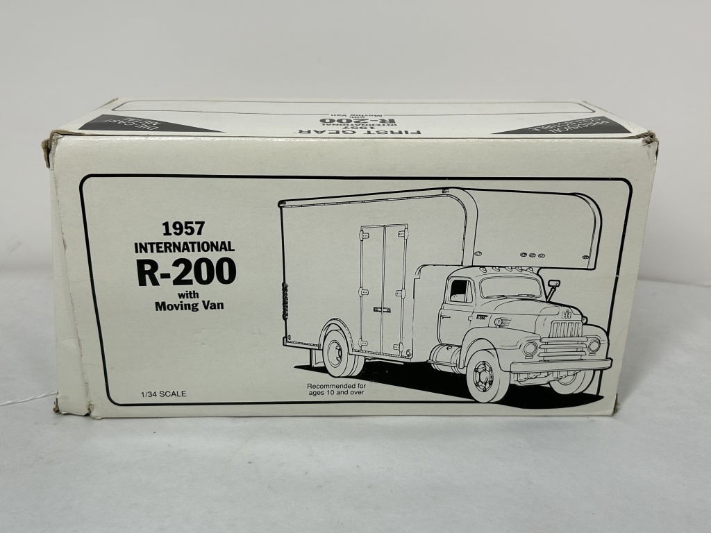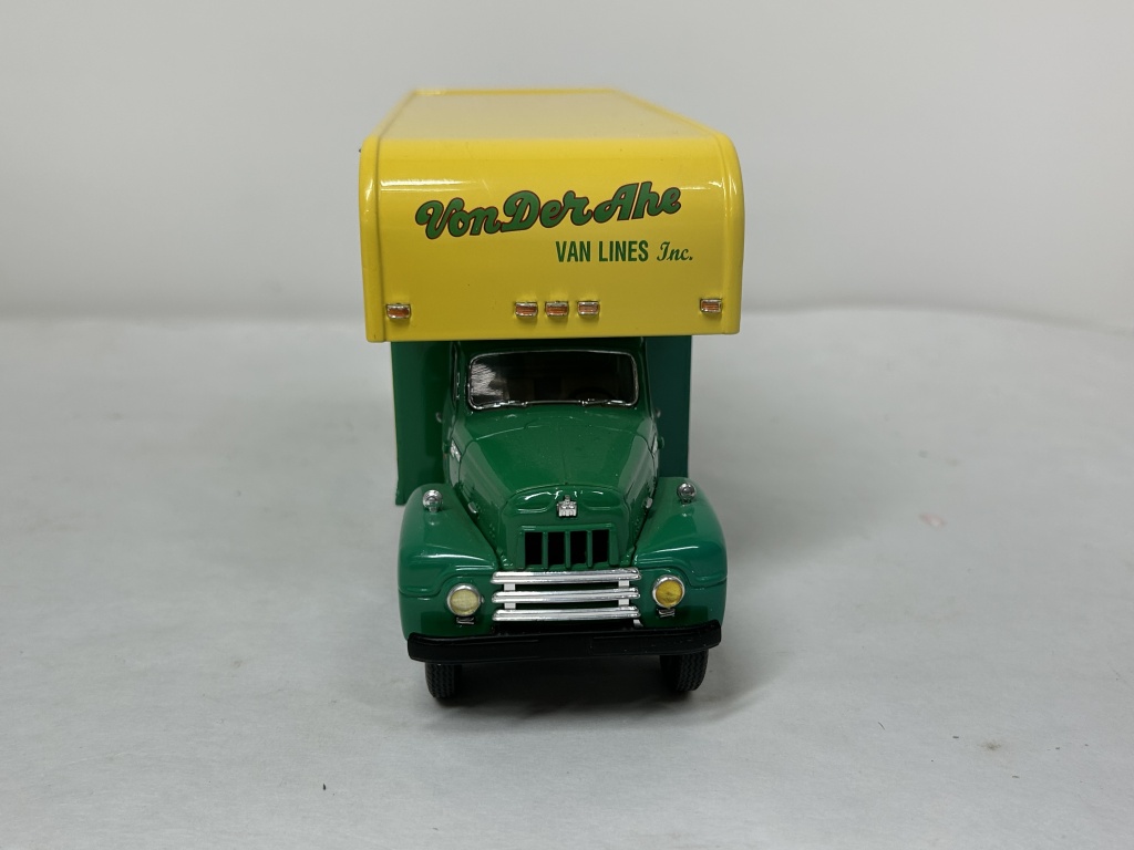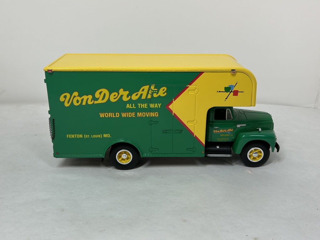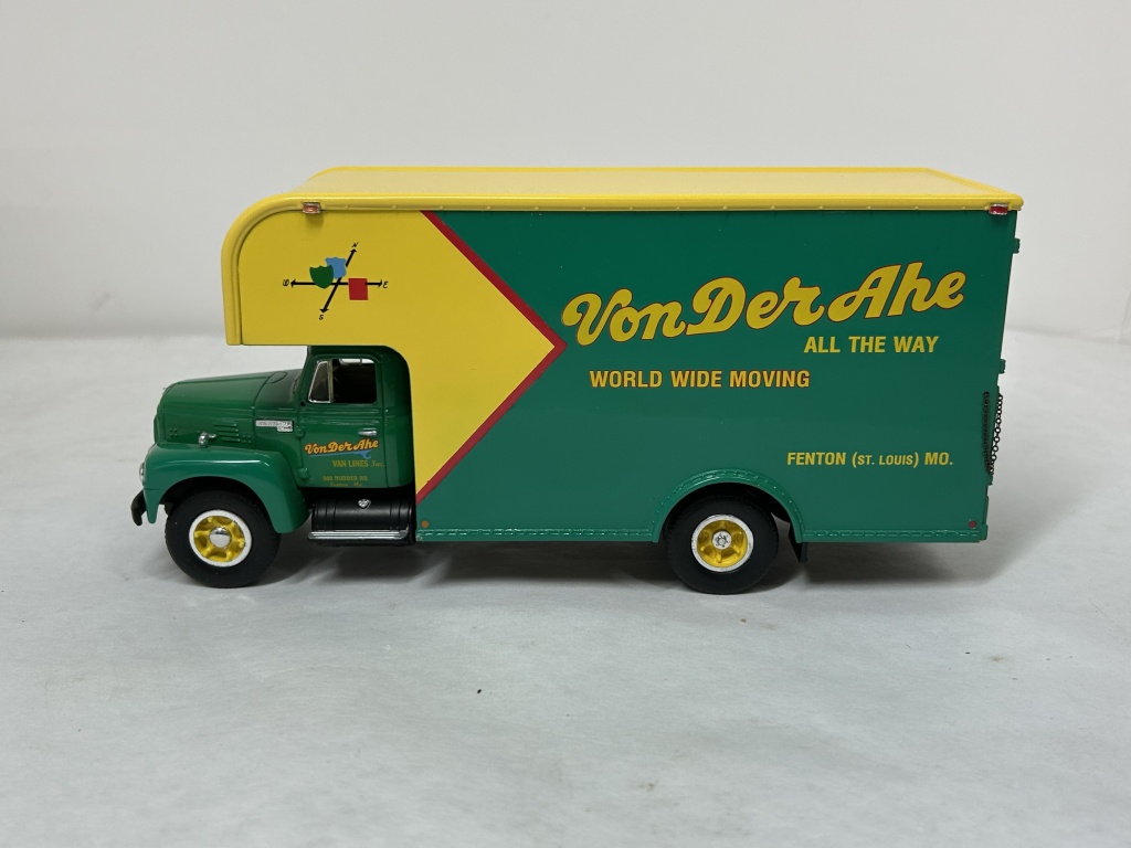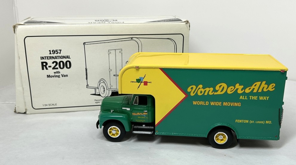 NIB 1/34 DIE CAST METAL PRECISION COLLECTIBLE FIRST GEAR 1957 INTERNATIONAL R200 MOVING VAN VON DER AHE ALL THE WAY WORLD WIDE MOVING FENTON ST. LOUIS MO.