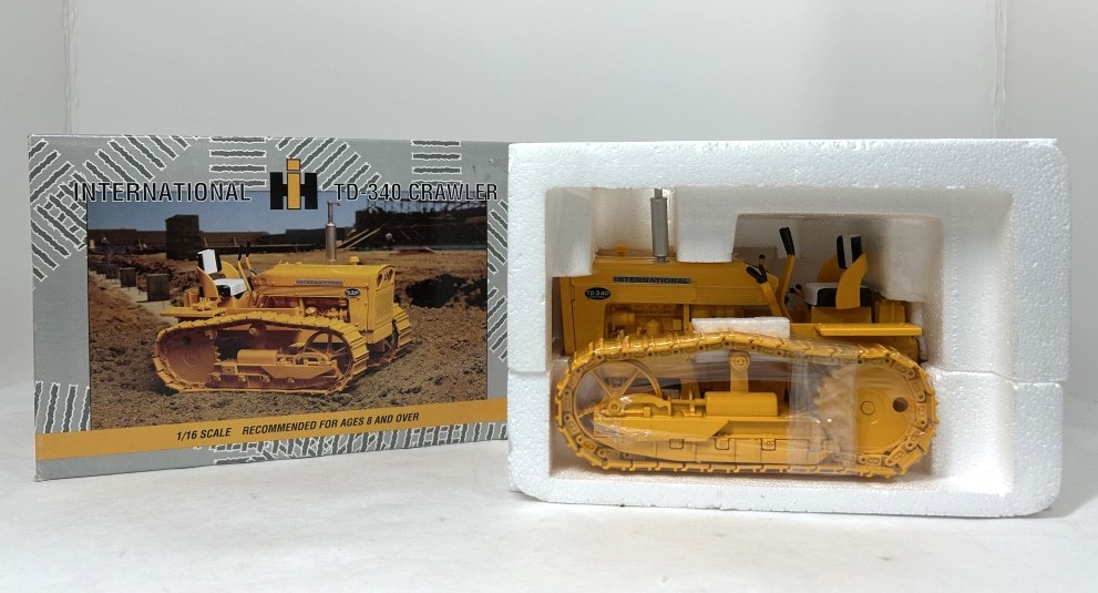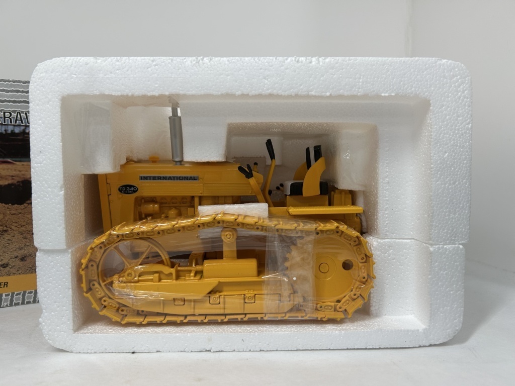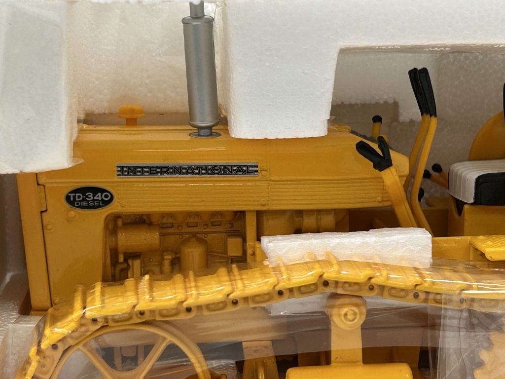 NIB 1/16 DIE CAST METAL INTERNATIONAL TD 340 DIESEL CRAWLER TRACTOR METAL TRACKS AN YELLOW EDITION STOCK NO. 4592 ITEM NO. 1685U