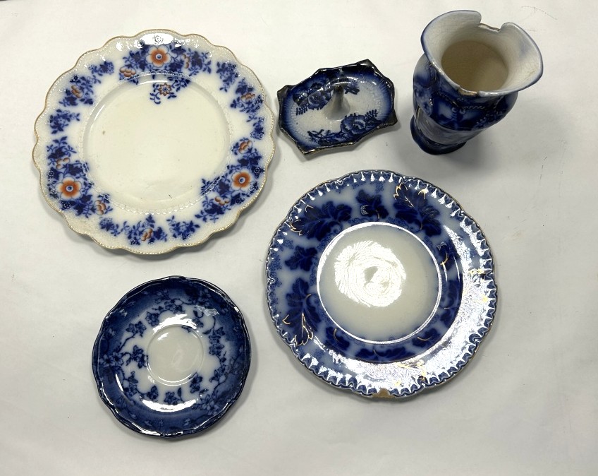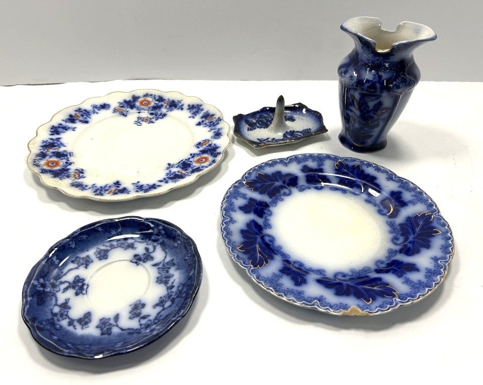 LOT INCLUES 2 PLATES, 1 SAUCER, VASE AND RING HOLDER DISH IN MULTIPLE PATTERNS