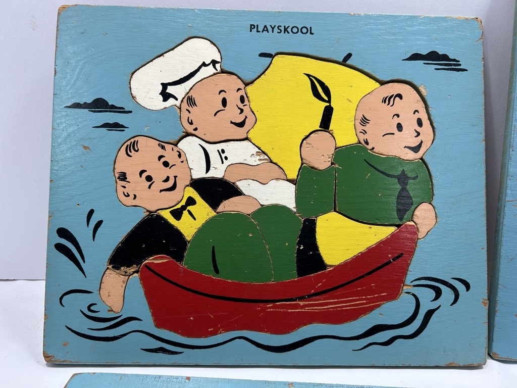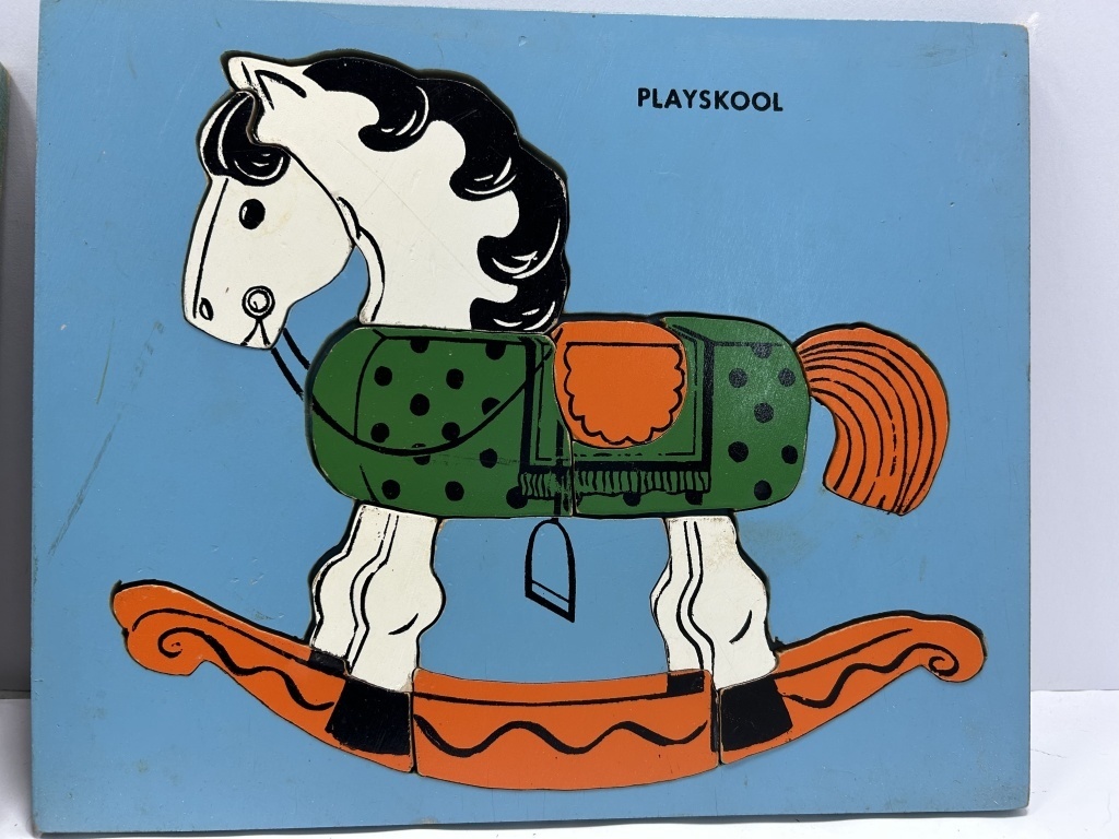 SET OF 4 PLAYSKOOL PUZZLES 11.5″X9.5″ INCLUDES ROCKING HORSE, ROWBOAT, CLOWN AND CAT PLAYING A VIOLIN