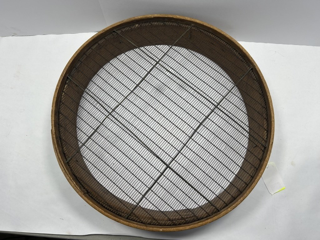 SIEVE HAS BENTWOOD FRAME AND WIRE MESH SCREEN, EXCELLENT CONDITION