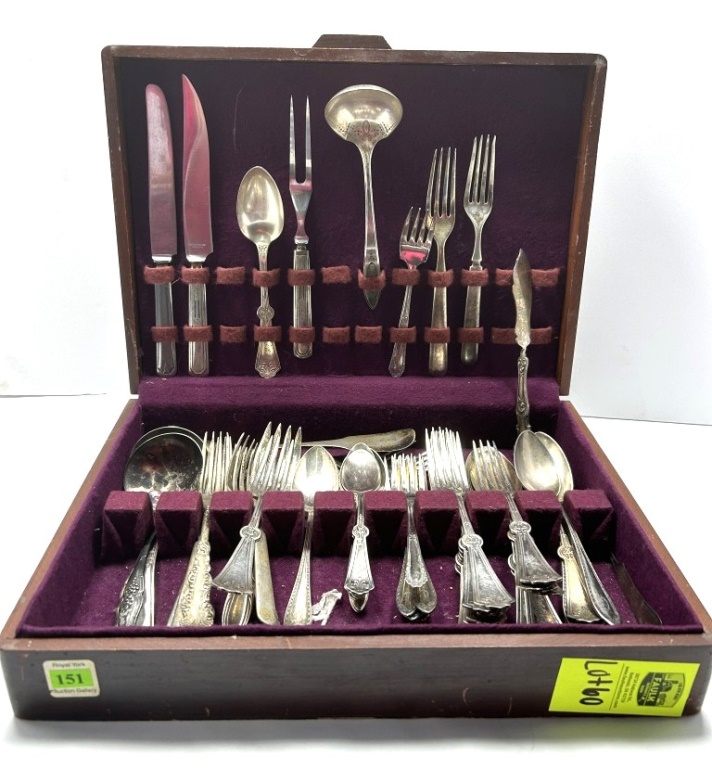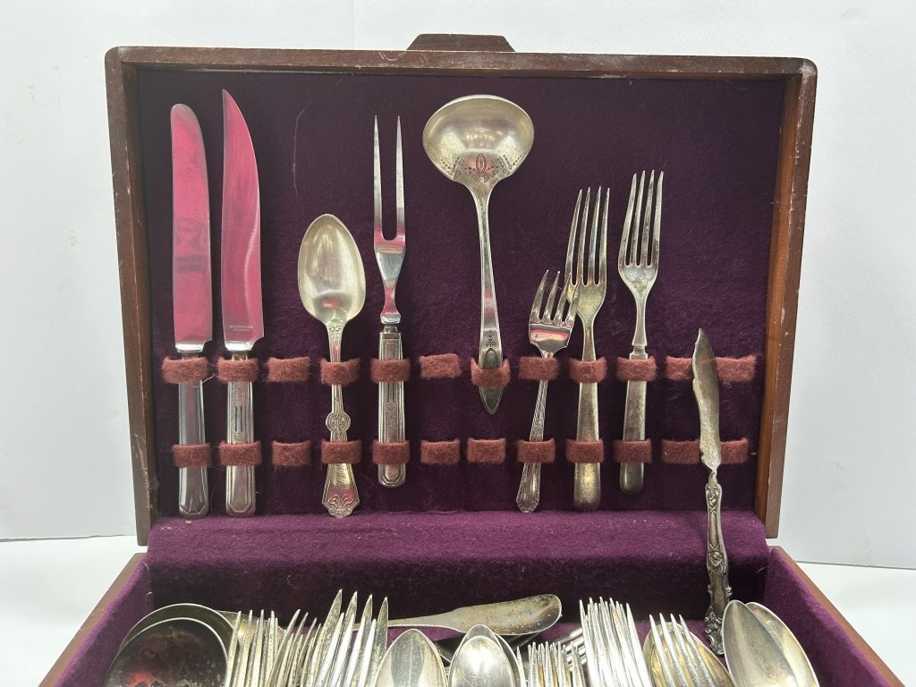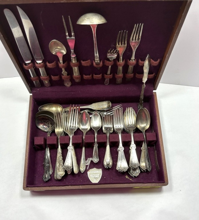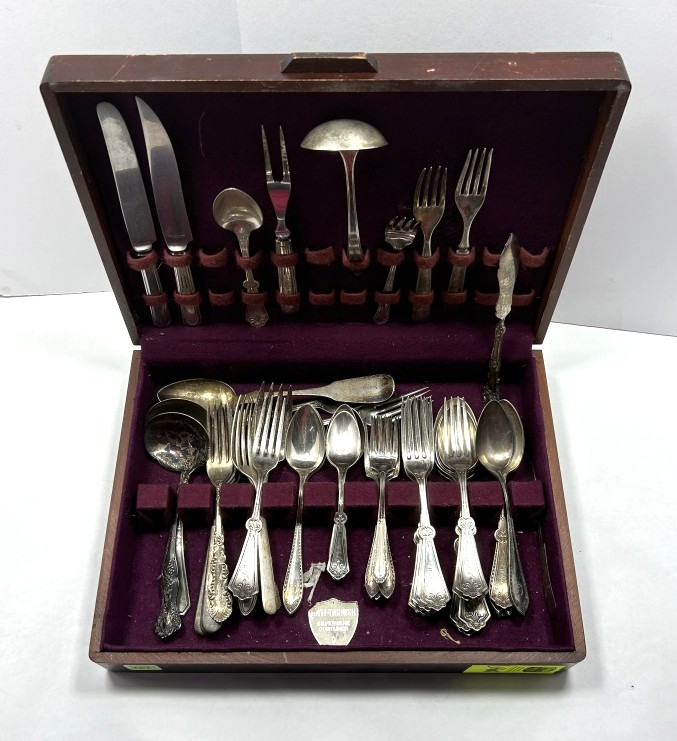 SILVERPLATE FLATWARE SET INCLUDES MOSTLY FORKS AND SPOONS IN ADDITION TO MULTIPLE SERVING PIECES