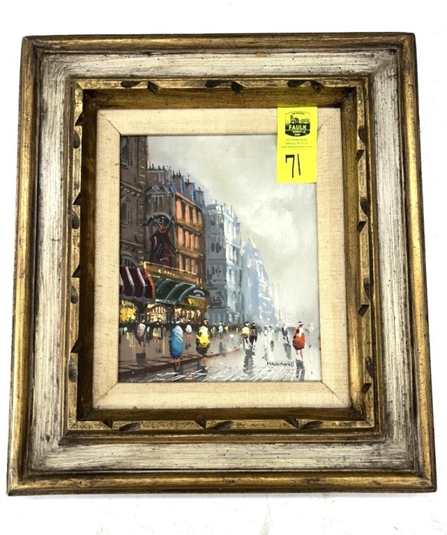 MARCHAND PAINTING OF A PARISIAN STREET 15.5X17