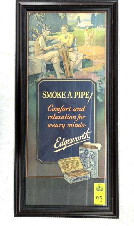 FRAMED SMOKE A PIPE EDGEWOOD TABACCO ADVERTISEMENT BY LARUS & BROTHERS CO. 14.5X30
