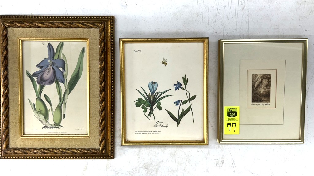 LOT INCLUDES FRAMED BOTINICAL ARTWORK AND AMERICAN EGRET ARTWORK 12X15 AND 9X11