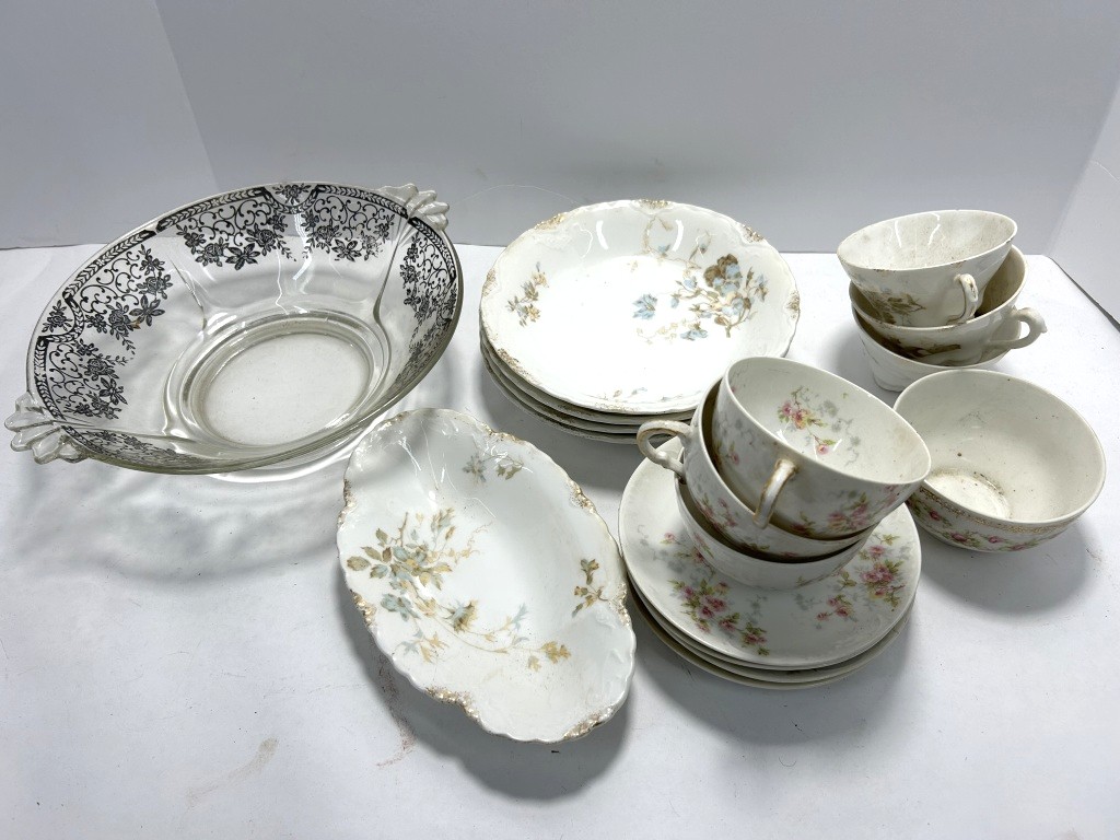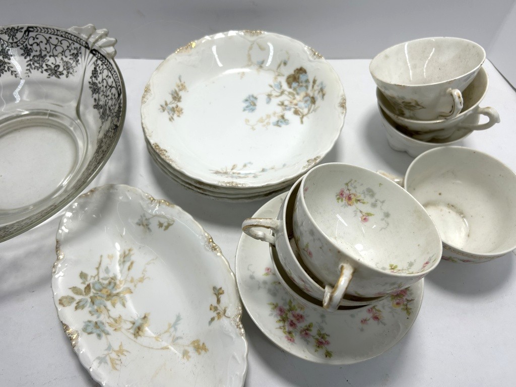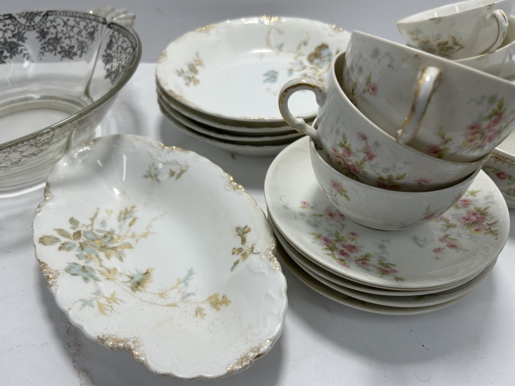 LOT INCLUDES MULTIPLE TEACUPS, SAUCERS, BOWLS, AND SERVING BOWLS IN FLORAL PATTERNS