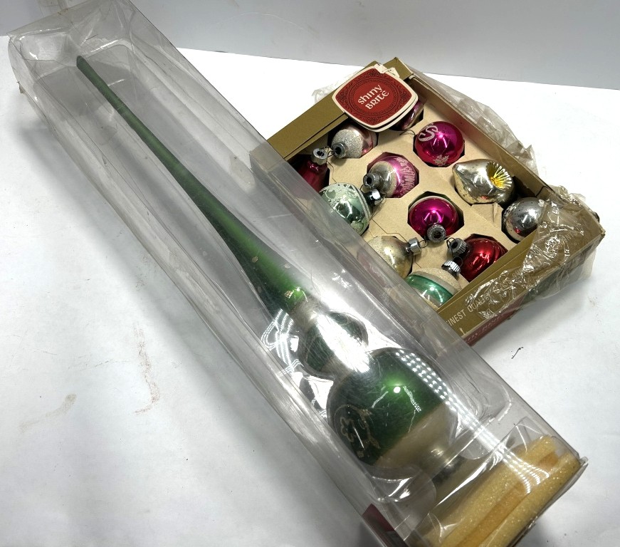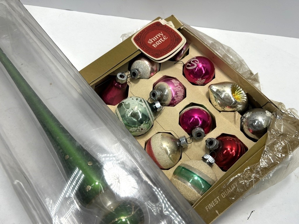 VINTAGE TREE TOPPER AND MISC ORNAMENTS