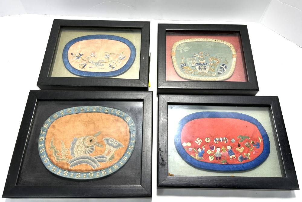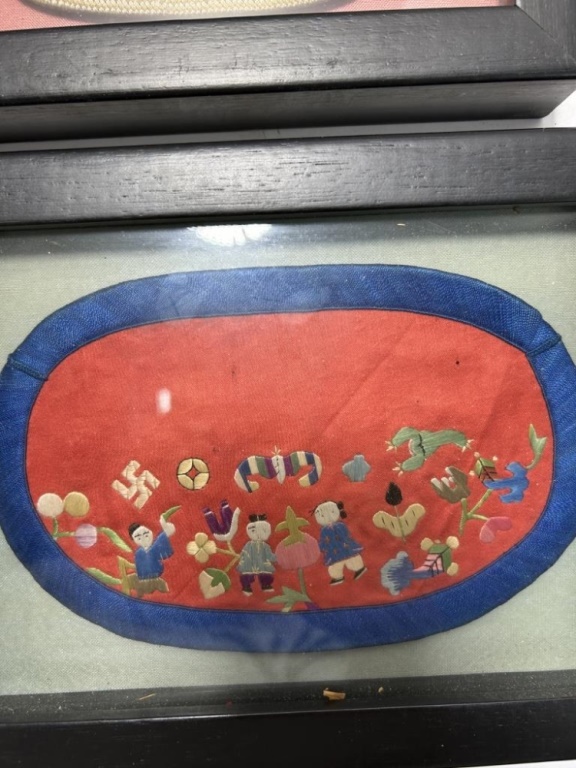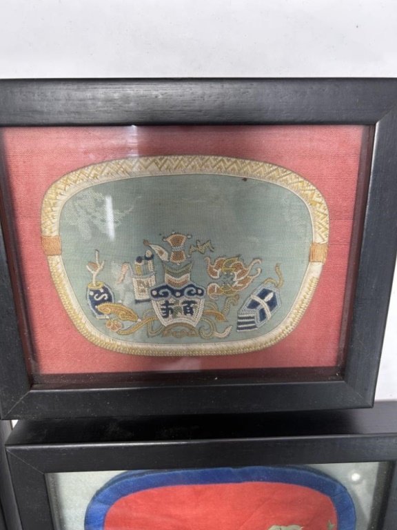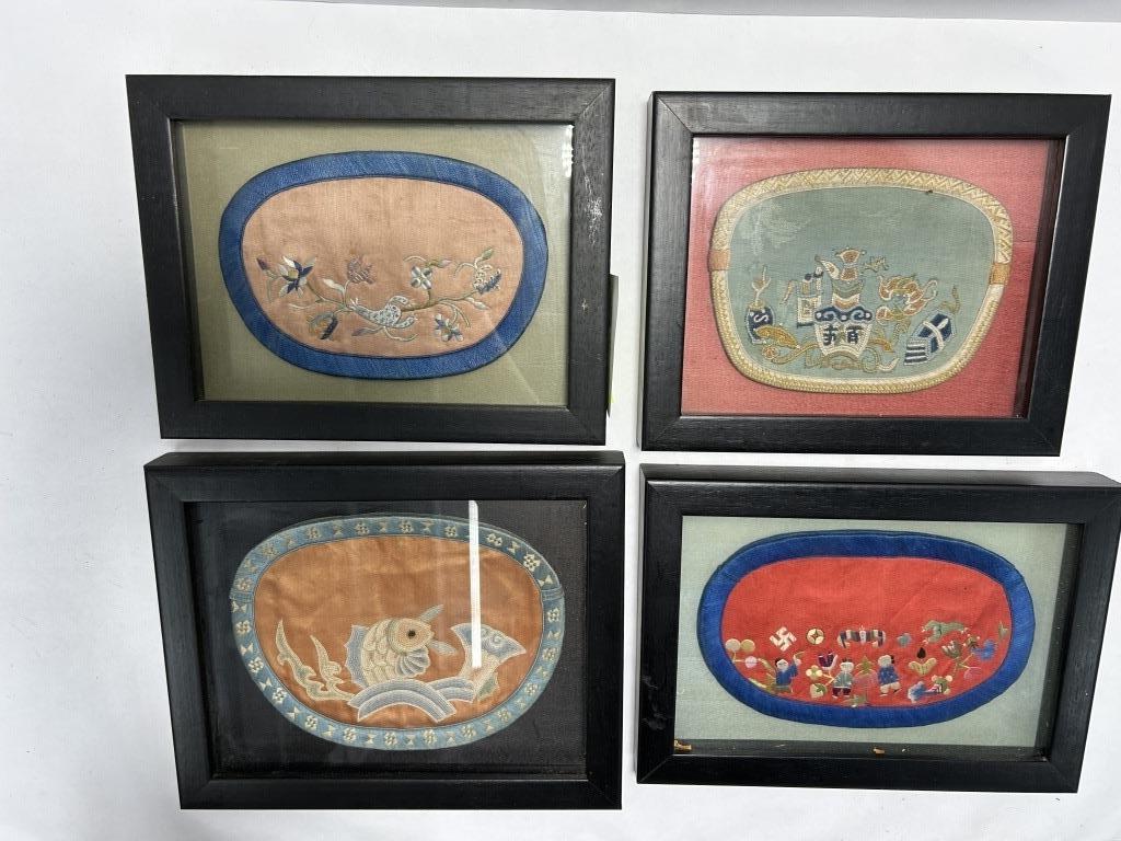 4 FRAMED EMBROIDERED TEXTILE PIECES