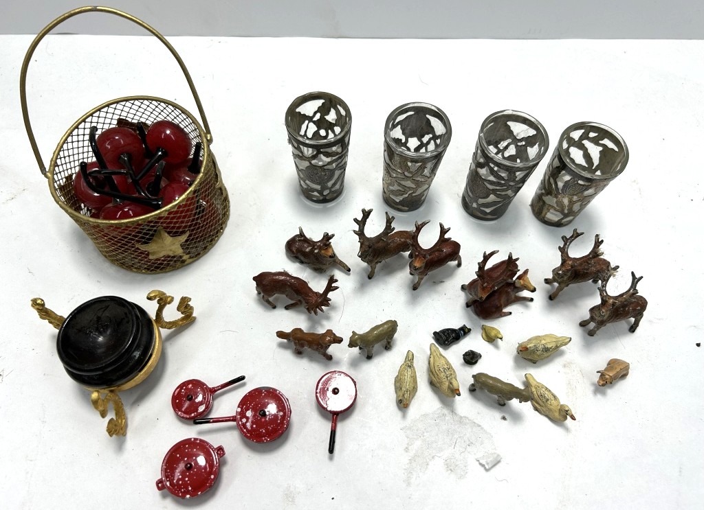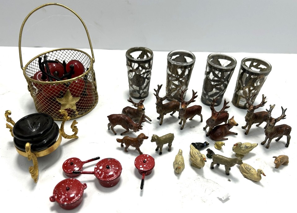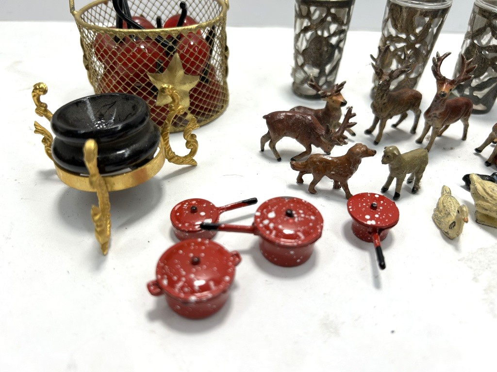 LOT INCLUDES MINIATURE POTS AND PANS, ANIMALS, AND RING HOLDER