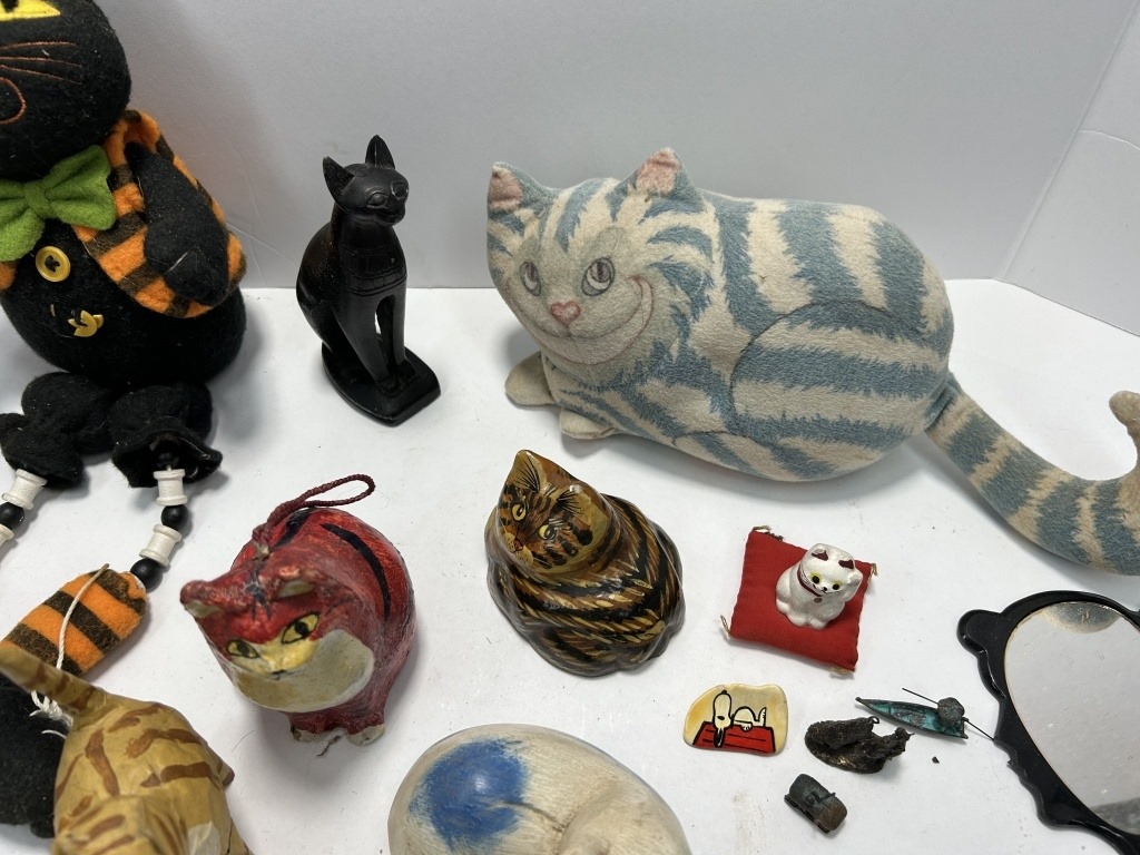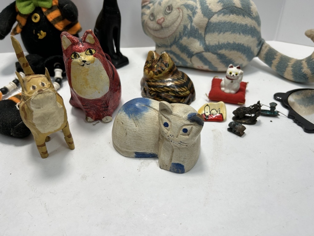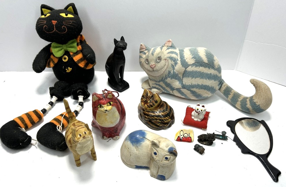 LOT INCLUDES CAT SILOUETTE MIRROR, AND MULTIPLE DECORATIVE CAT ITEMS