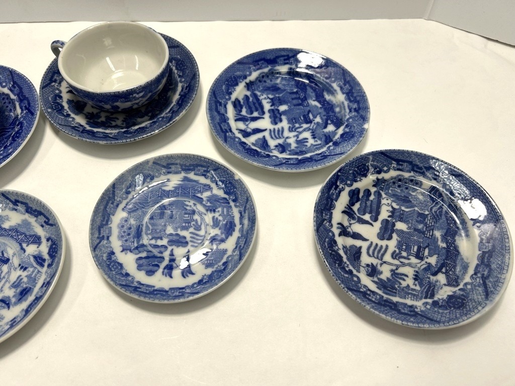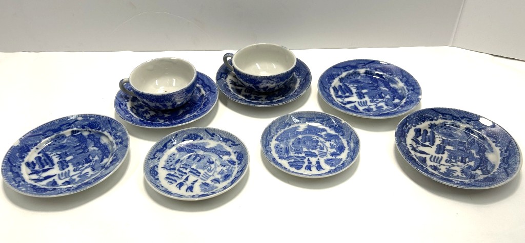 SET OF IMARI WARE DISHES INCLUDING PLATES AND TEACUP/SAUCERS