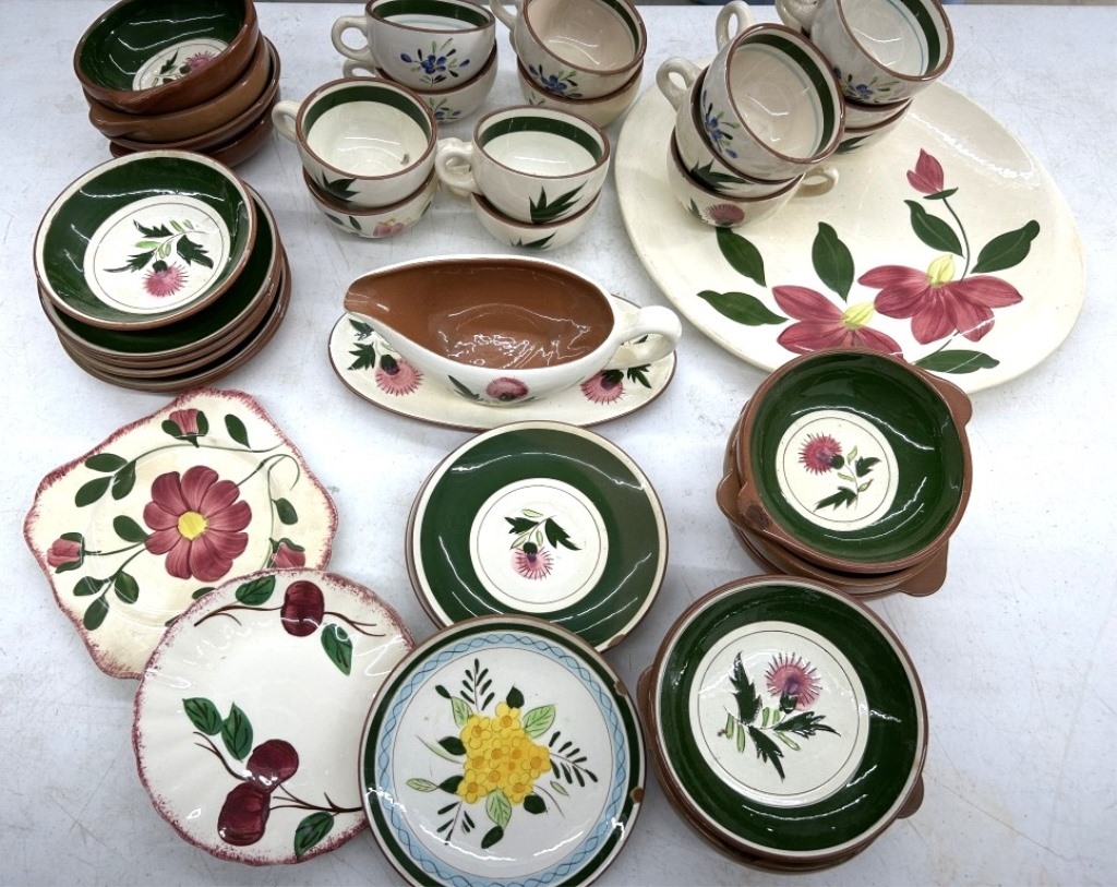 STANGL POTTERY COLLECTION IN COUNTRY GARDEN PATTERN INCLUDING CUPS, PLATTERS, PLATES AND BOWLS