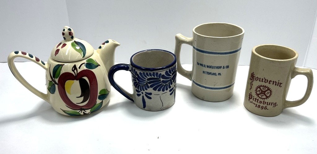 ASSORTMENT OF MUGS AND TEAPOT