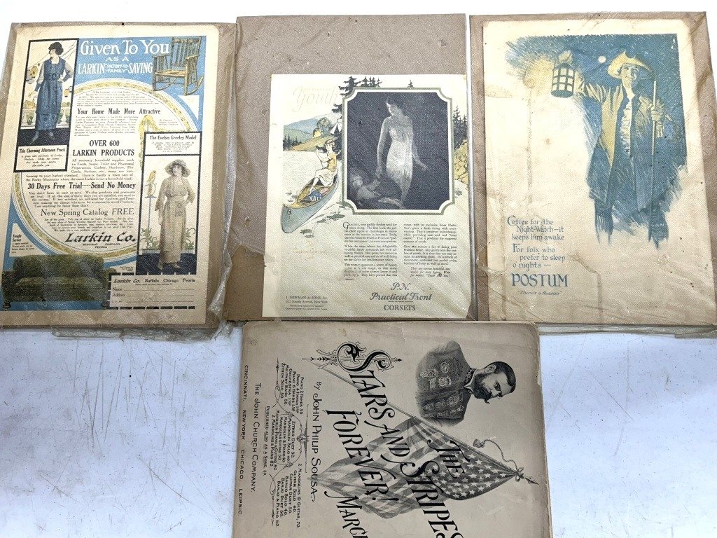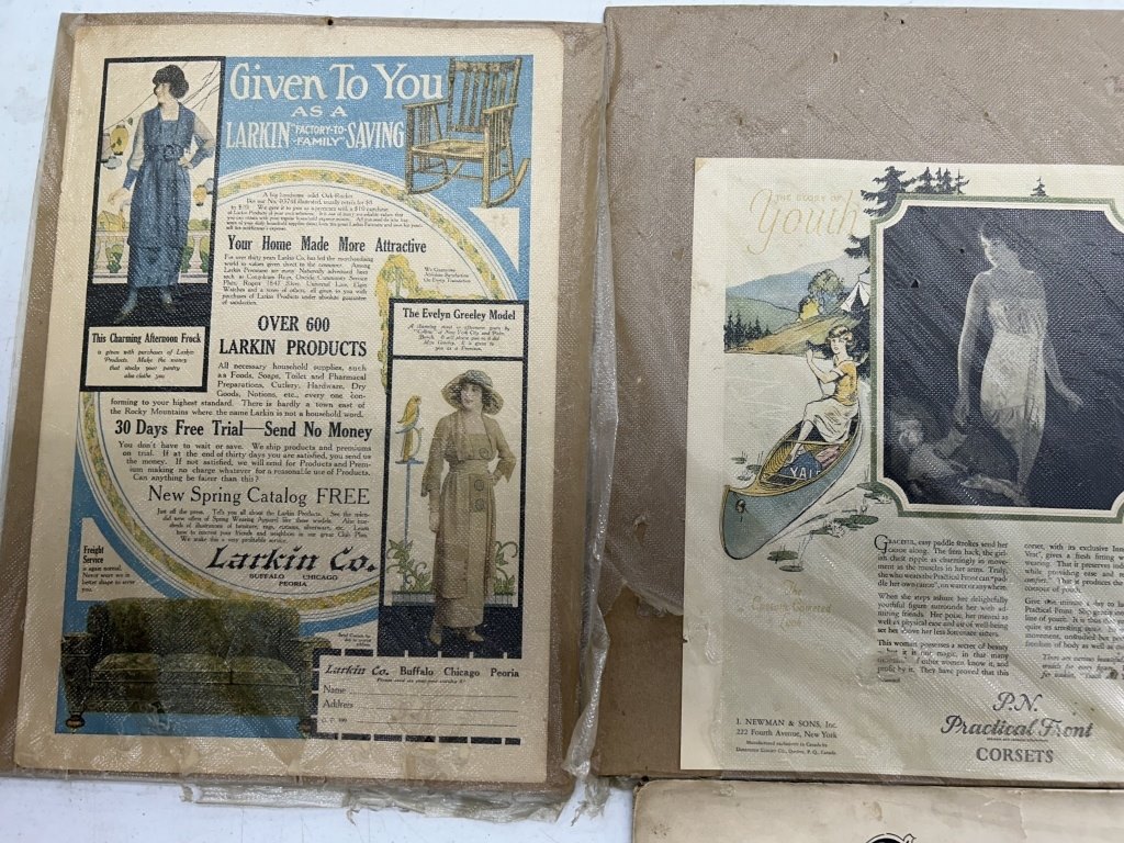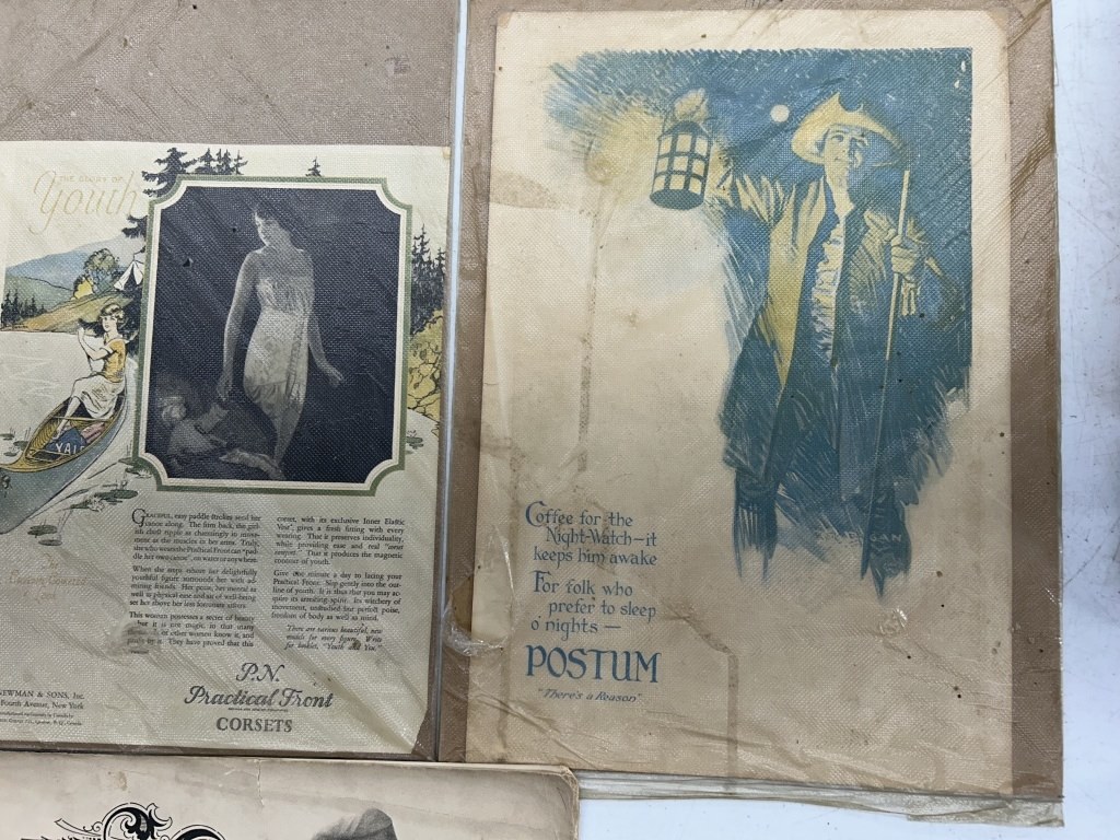 LOT INCLUDES LARKIN CO ADVERTISEMENT, P.N. PRACTICAL CORSET ADVETISEMENT, POSTUM CAFFEINE FREE ADVERTISEMENT