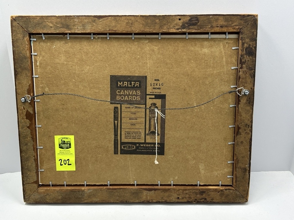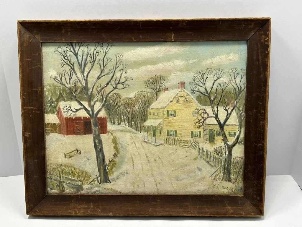 FRAMED PAINTING OF WINTER FARMHOUSE SCENE BY UNKNOWN ARTIST