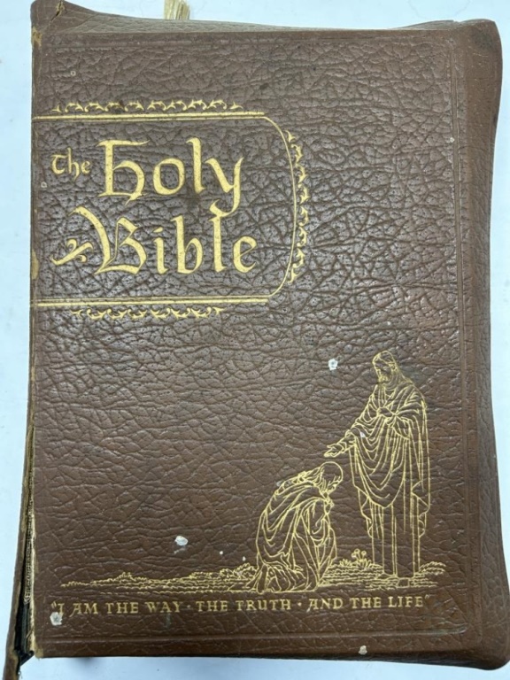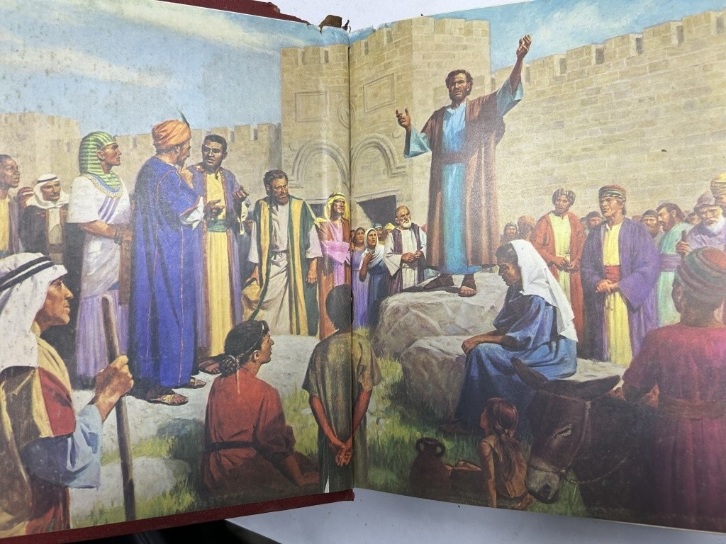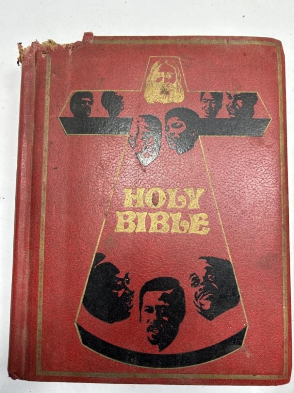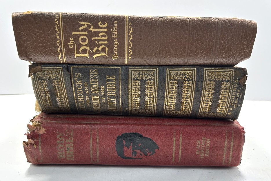 3 HARDBACK BIBLES, RED HOLY BIBLE FEATURES COLOR ILLUSTRATIONS INSIDE