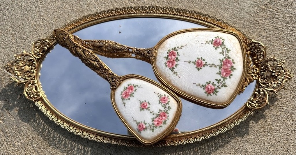 VINTAGE BEAUTY BRUSH AND MIRROR