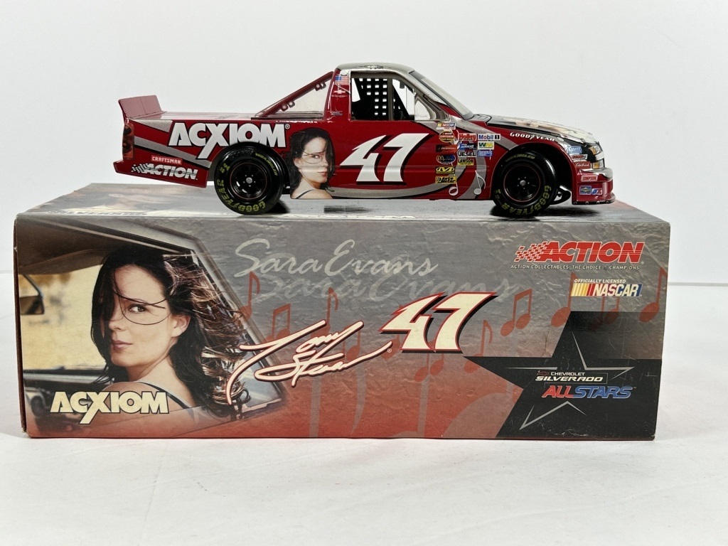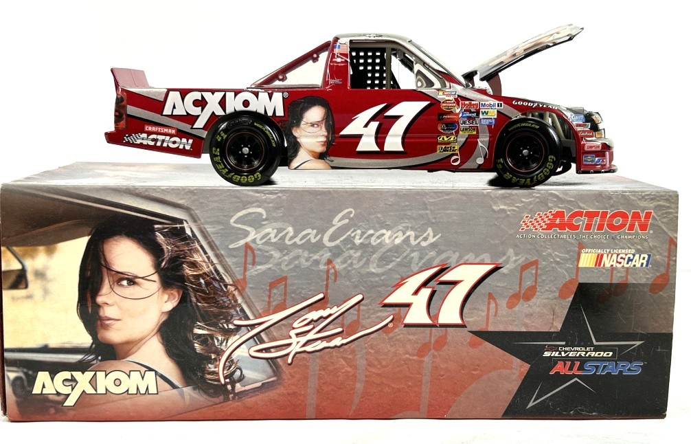 NOS TONY STEWART #47 SILVERADO CELEBRITY ALL STAR SARA EVANS 2004 CHEVY RACE TRUCK TOTAL PRODUCTION OF 5,316 1:24 SCALE DIE CAST ORIGINAL BOX