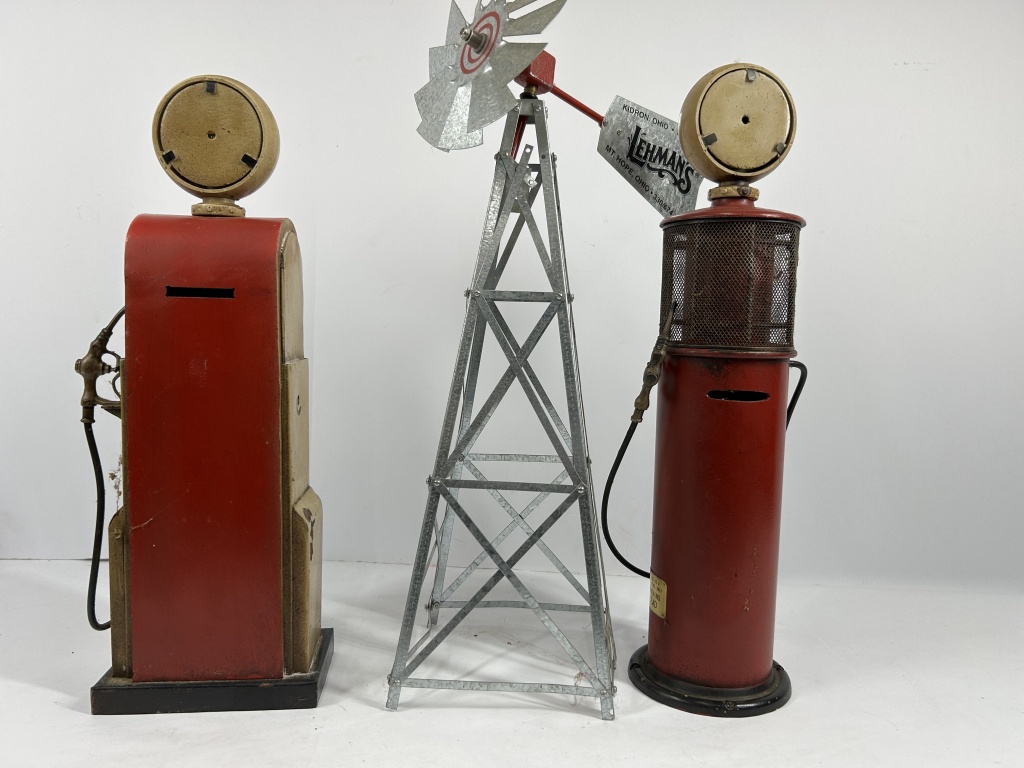 MINIATURE GAS PUMP COIN BANKS AND WINDMILL