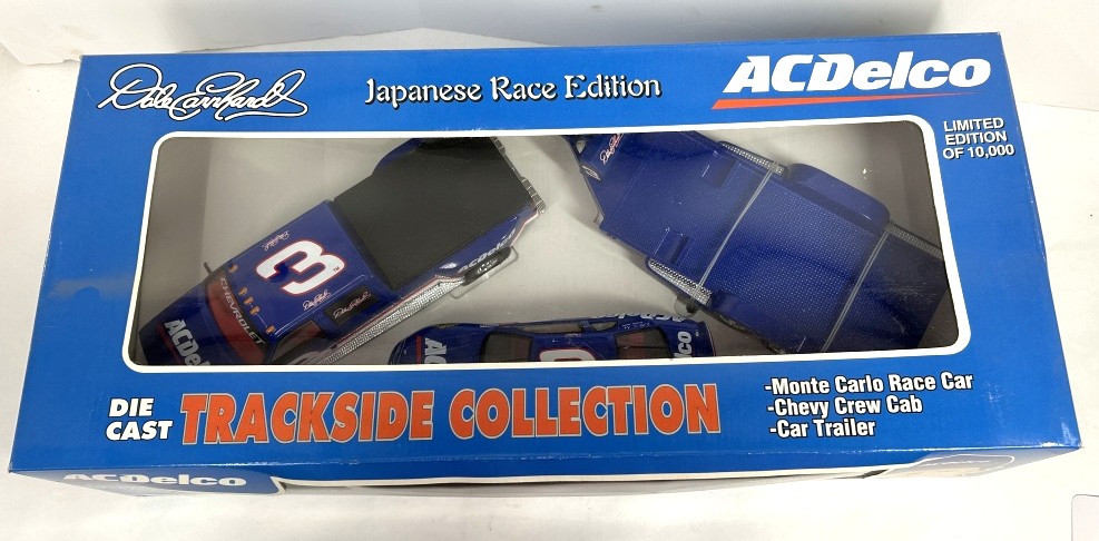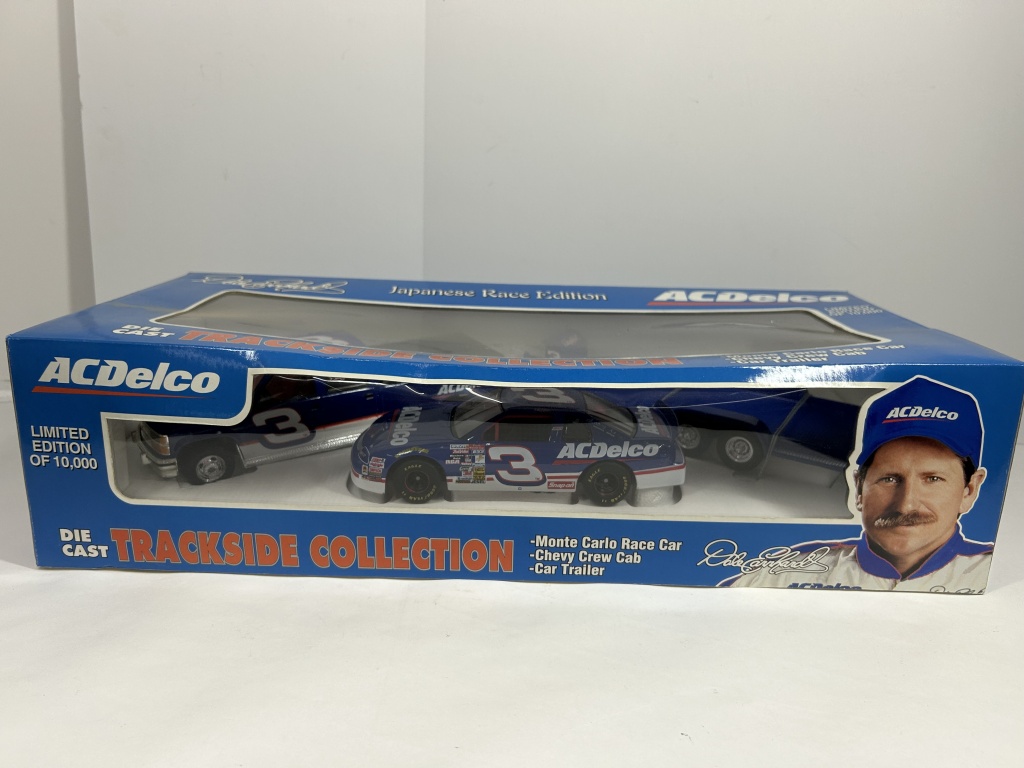 NOS DALE EARNHARDT JAPANESE RACE EDITION TRACKSIDE COLLECTION INCLUDING MONTE CARLO RACE CAR, CHEVY CREW CAB, AND CAR TRAILER DIE-CAST LIMITED EDITION OF 10,000