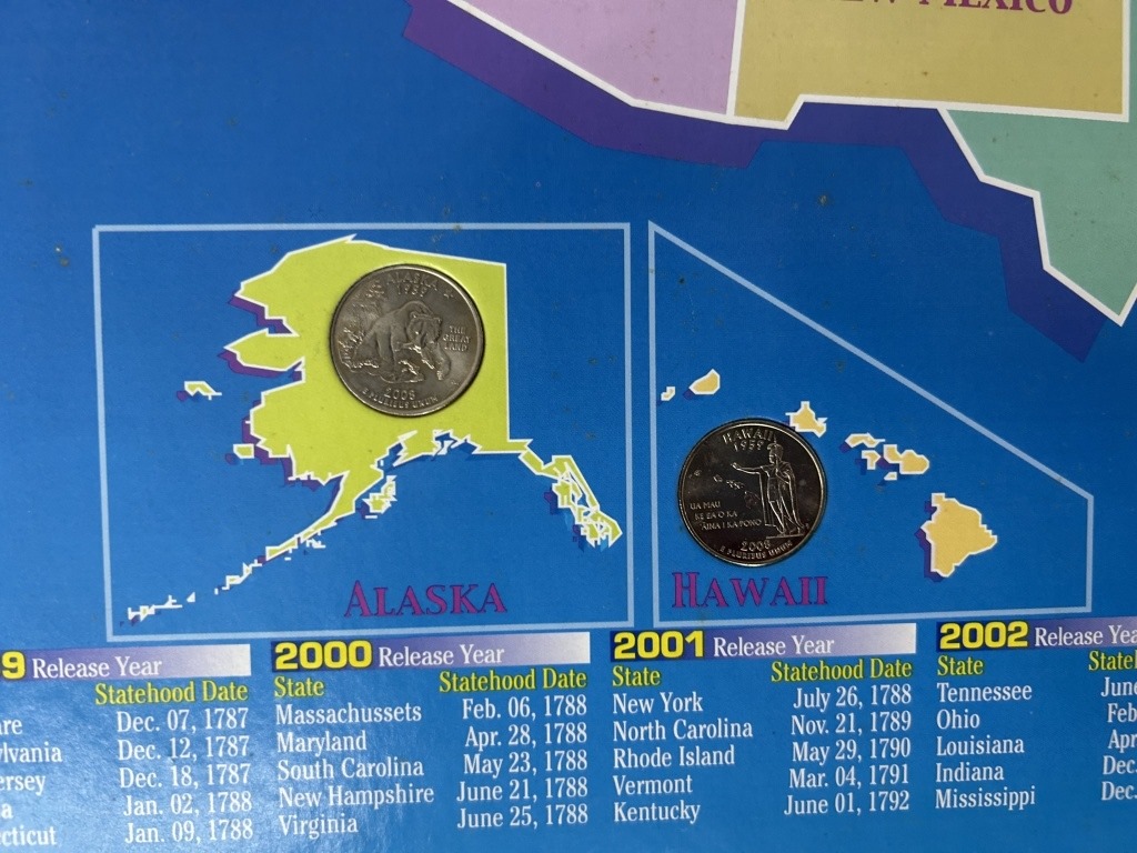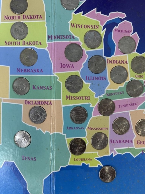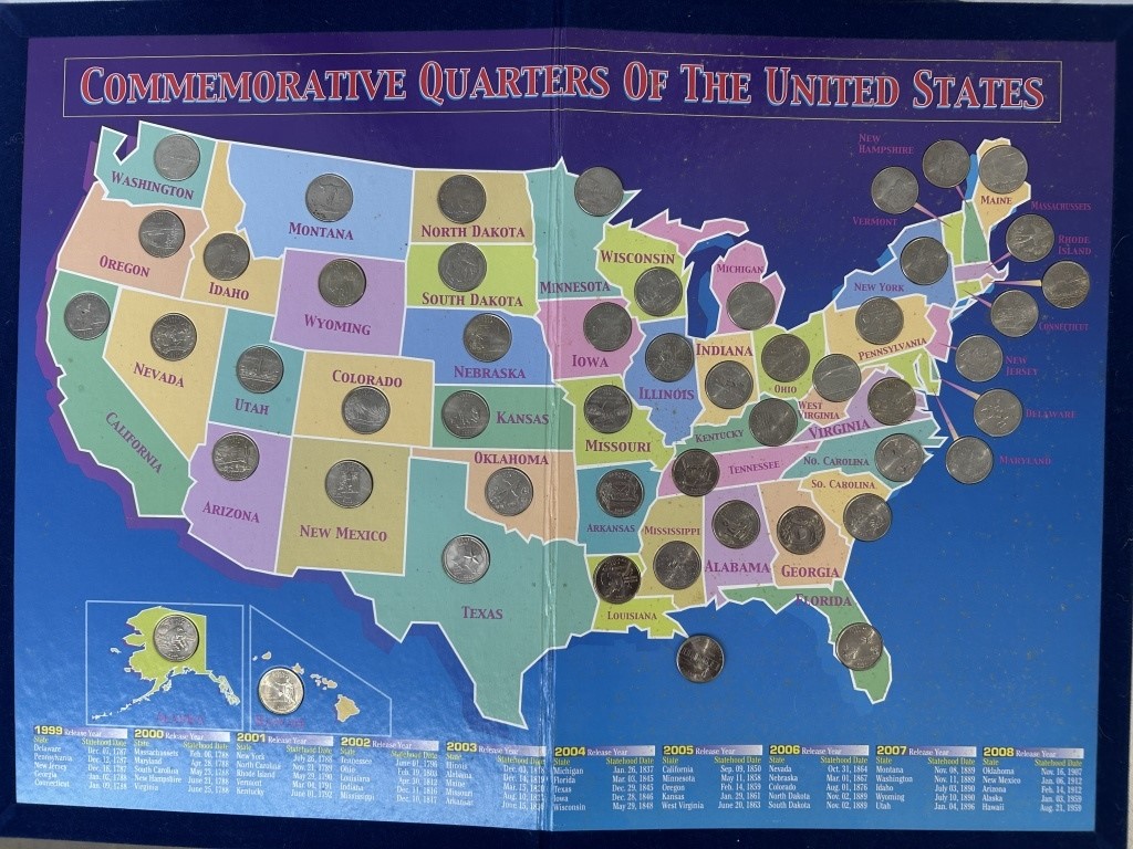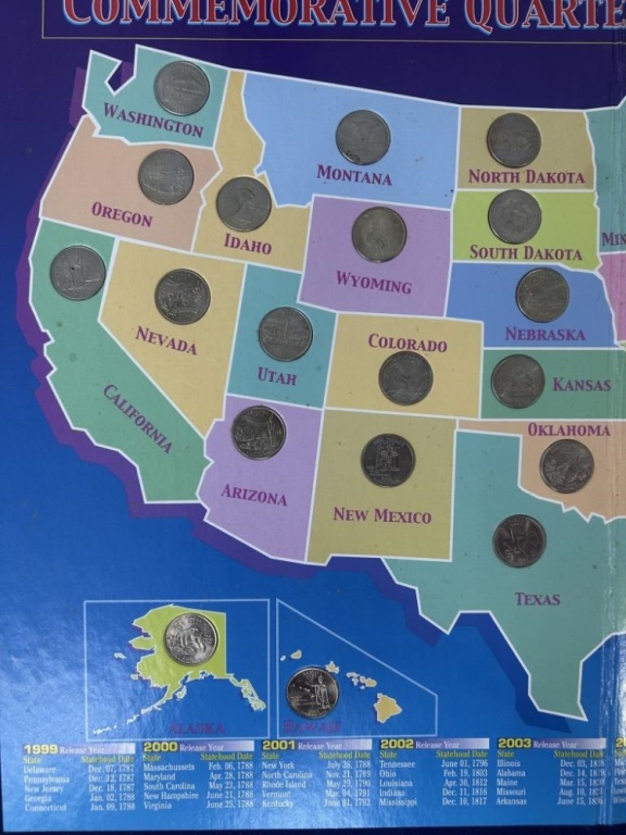 COMMEMORATIVE QUARTERS OF THE US BOARD WITH STATE QUARTERS INCLUDED