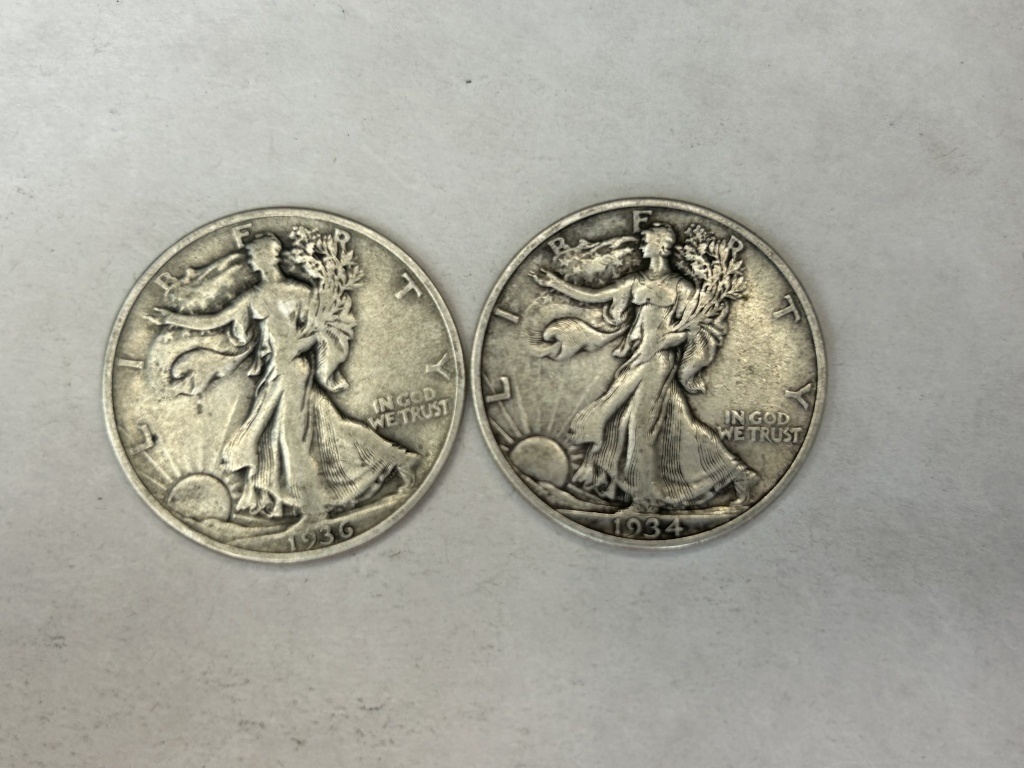 1934 AND 1936 WALKING LIBERTY HALF DOLLAR