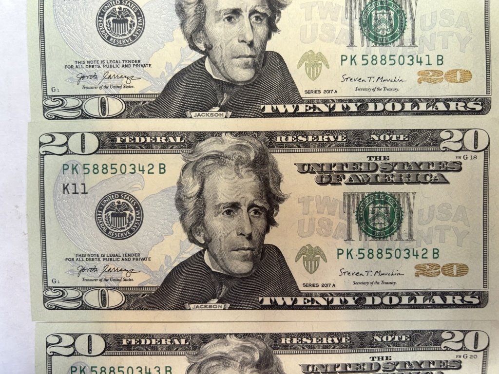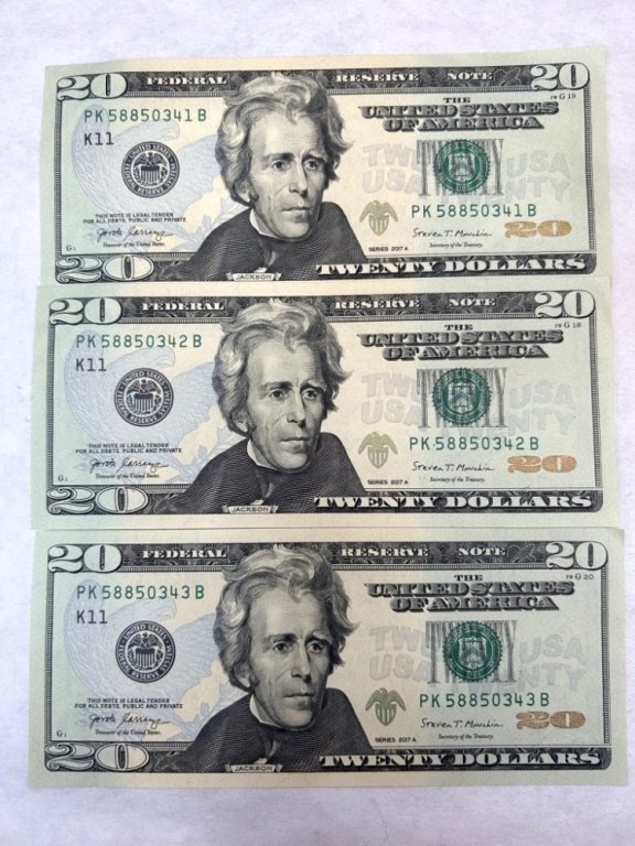 LOT OF 3 SEQUENCIAL $20 BILLS