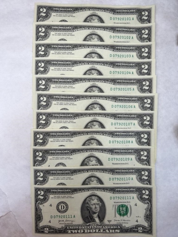 LOT OF 11 SEQUENCIAL $2 BILLS