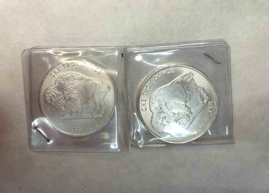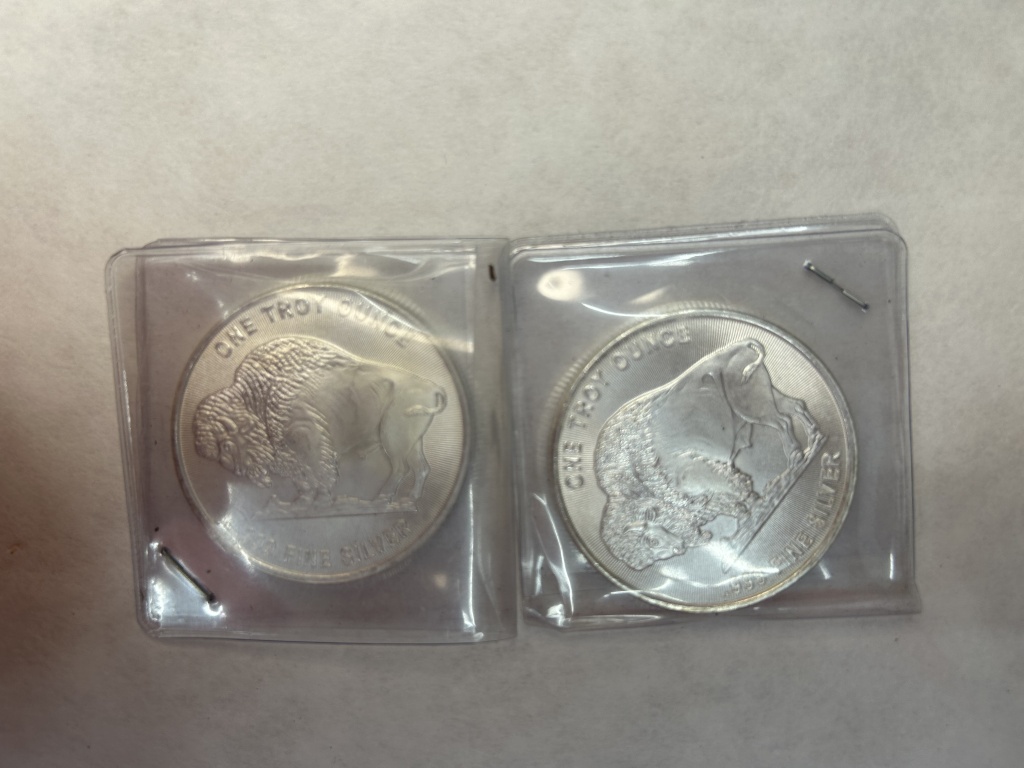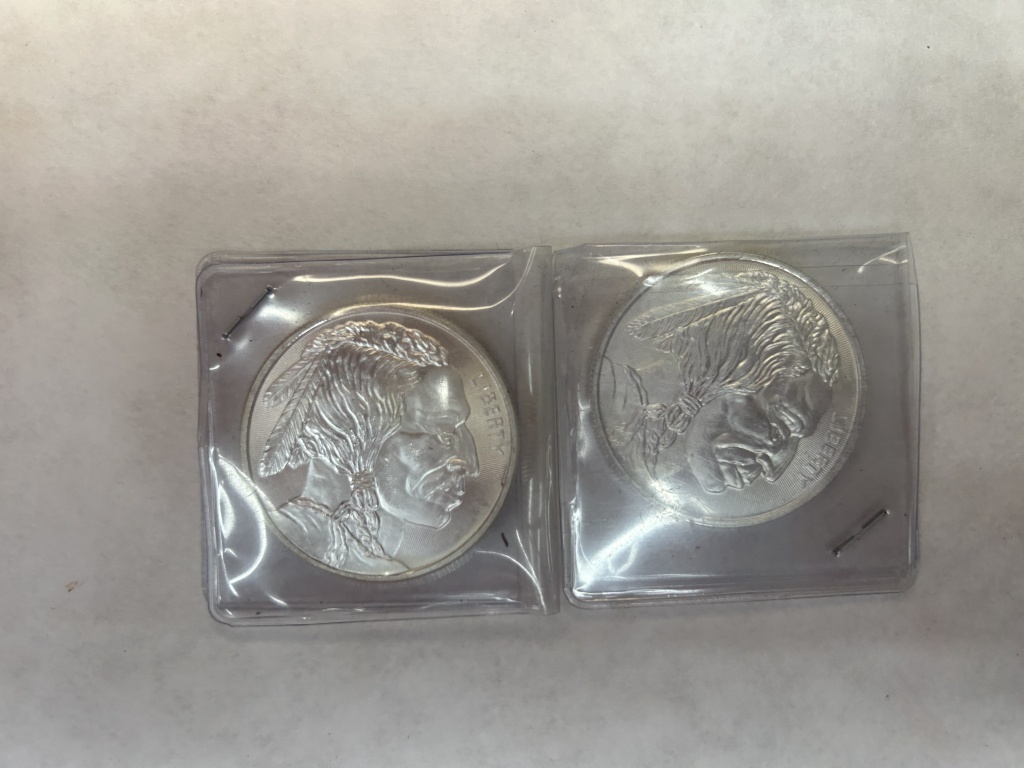 LOT OF 2 ONE TROY OUNCE COINS .9999 FINESILVER COIN