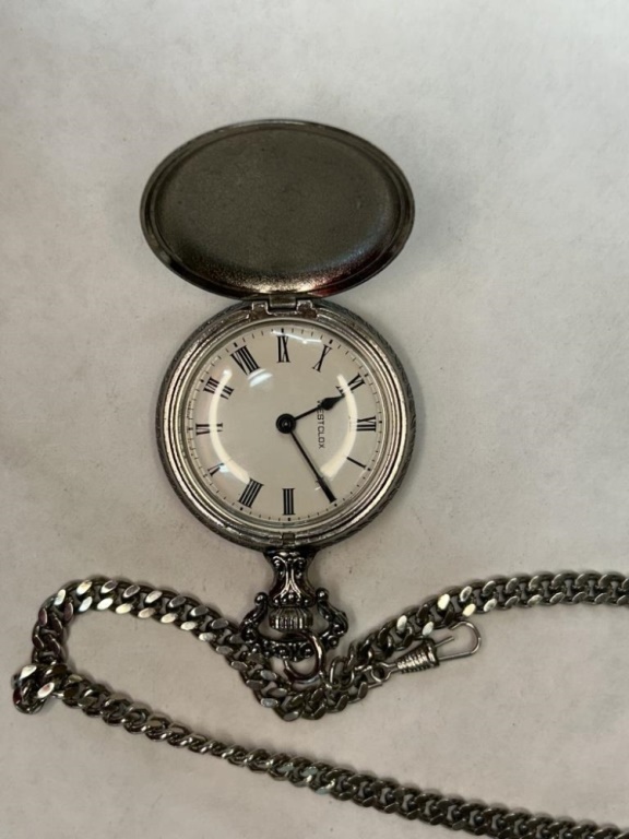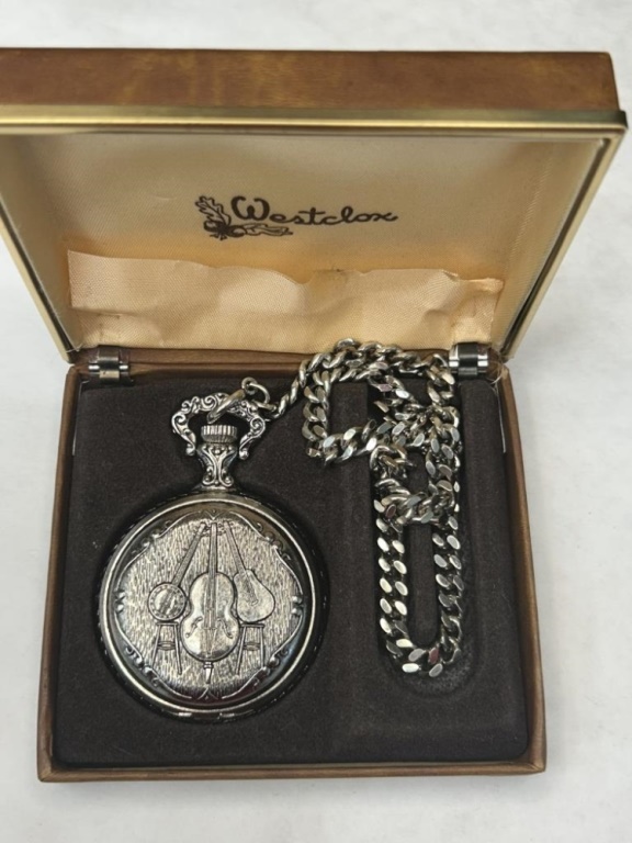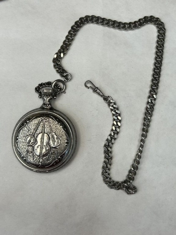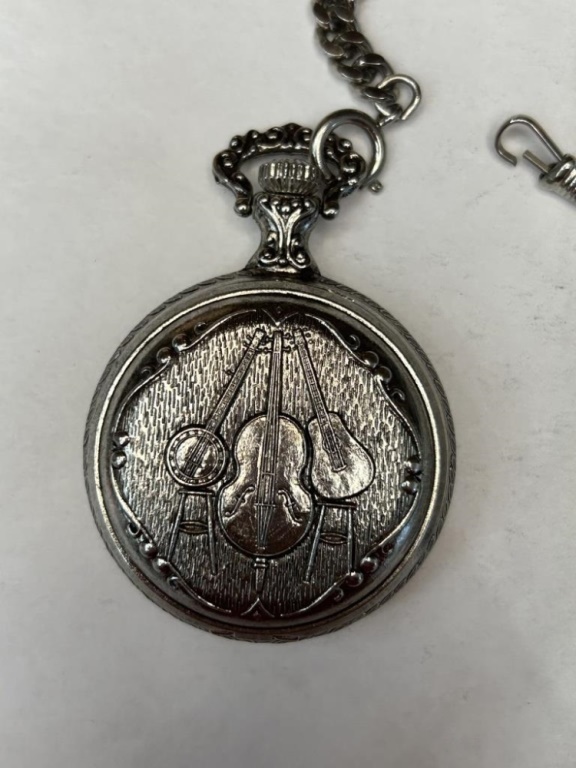 WESTCLOX POCKET WATCH WITH STRING INSTRUMENT ENGRAVING