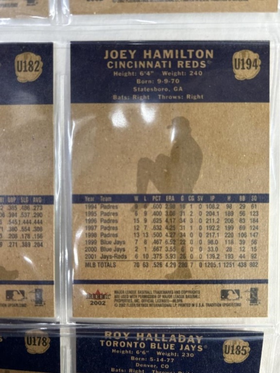 COLLECTORS CARDS INCLUDING JOHN STEPHENS, JOEY HAMILTON, AND DAVID JUSTICE