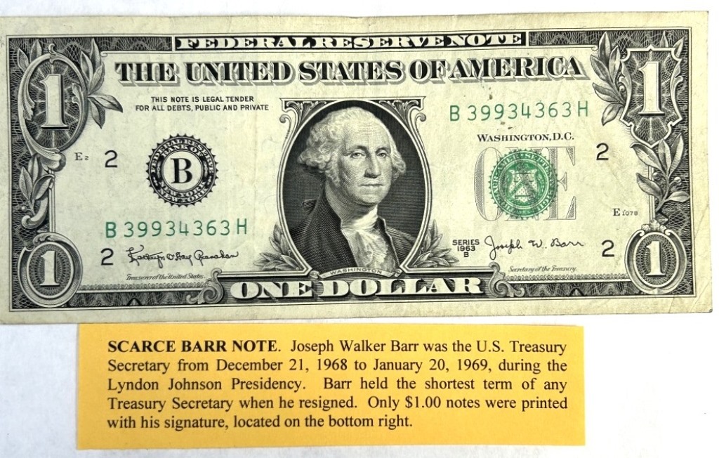 JOSEPH WALKER BARR ONE DOLLAR BILL