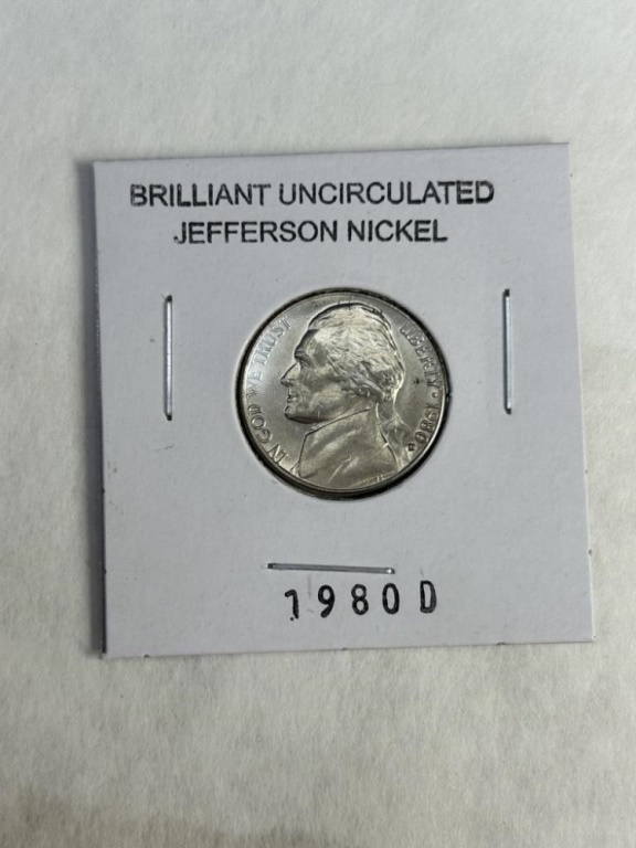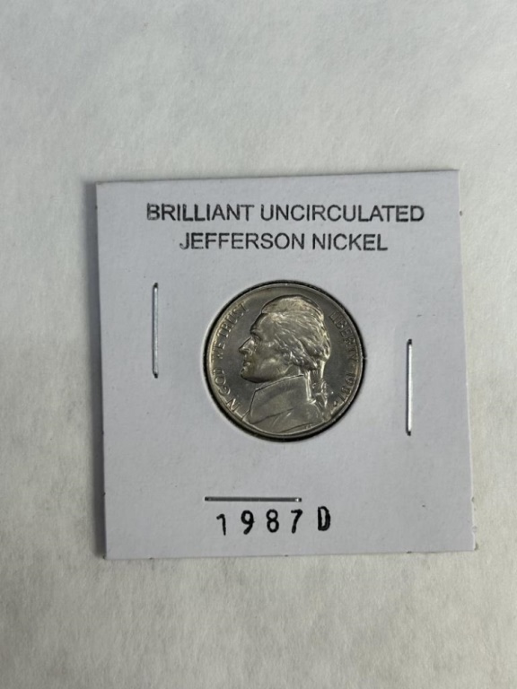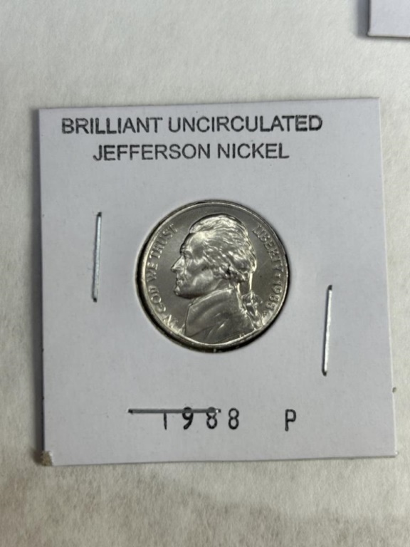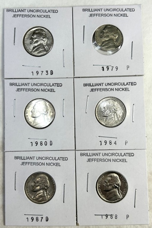 BRILLIANT UNCIRCULATED JEFFERSON NICKELS 1973D,1979P,1980D,1984P, 1987D, 1988P