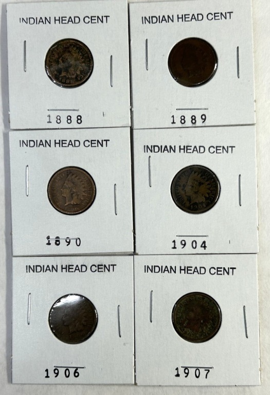 INDIAN HEAD CENT 1888,1889,1890,1904,1906,1907
