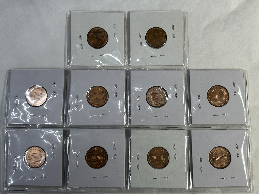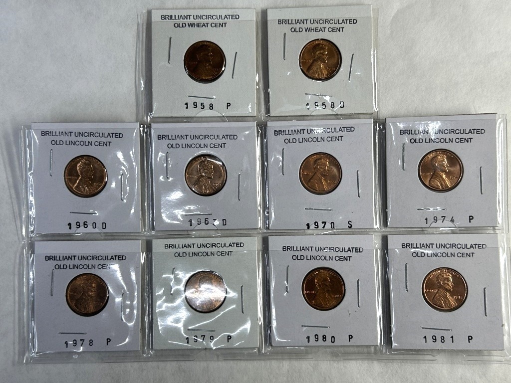 LOT OF BRILLIANT UNCIRCULATED OLD LINCOLN AND WHEAT CENTS (10 COINS TOTAL)