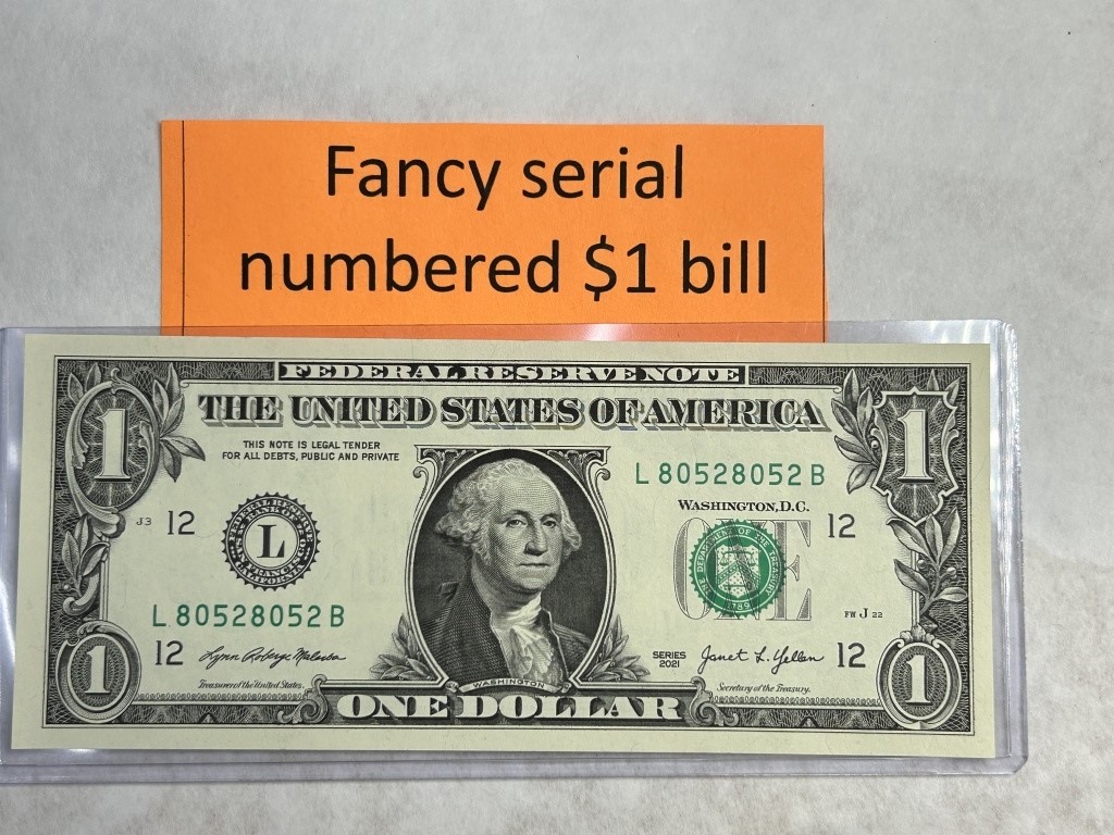 FANCY SERIAL NUMBERED $1 BILL