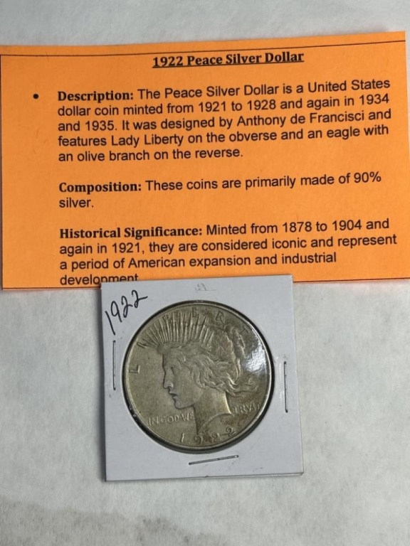 1922 PEACE SILVER DOLLAR 90% SILVER