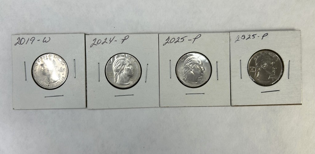 LOT INCLUDES 2025 AMERICAN WOMENS QUARTER (2), 2024 AMERICAN WOMENS QUARTER, AND 2019 SAN ANTIONIO MISSIONS NATIONAL HISTORICAL PARK QUARTER