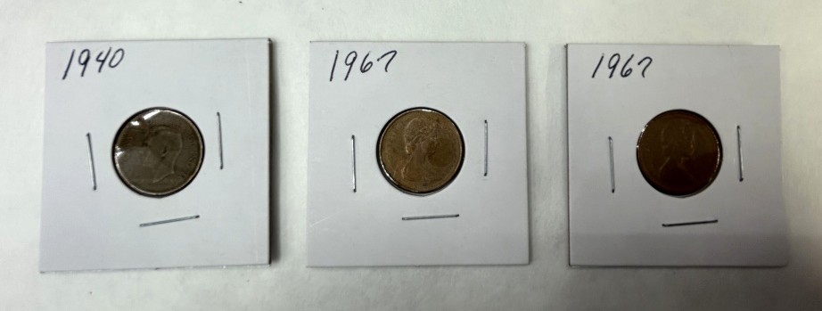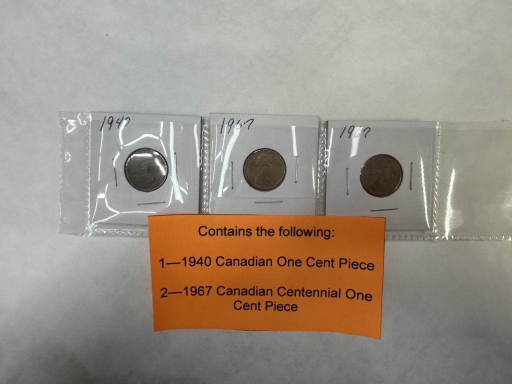 CANADIAN ONE CENT PIECES 1 FROM 1940 AND 2 FROM 1967