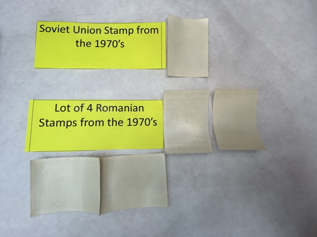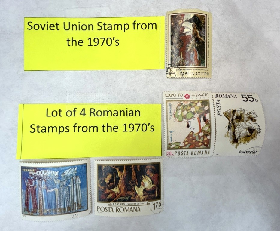 1970S SOVIET UNION STAMP AND 4 ROMANIAN STAMPS