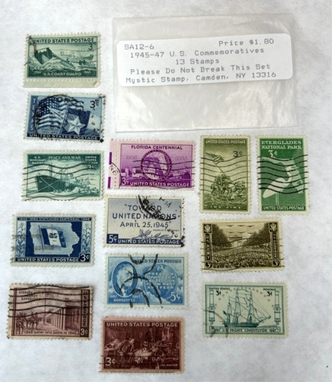 13 1945-1947 U.S. COMMEMORATIVE STAMPS