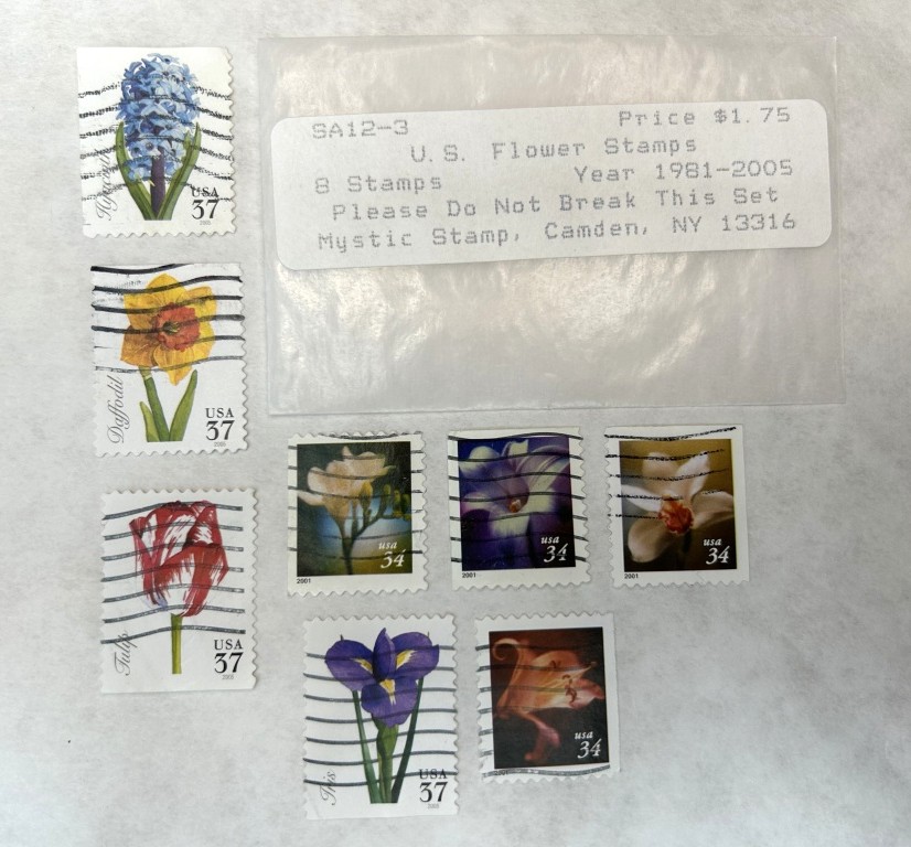 U.S. FLOWER STAMPS FROM YEARS 1981-2005 8 STAMPS TOTAL