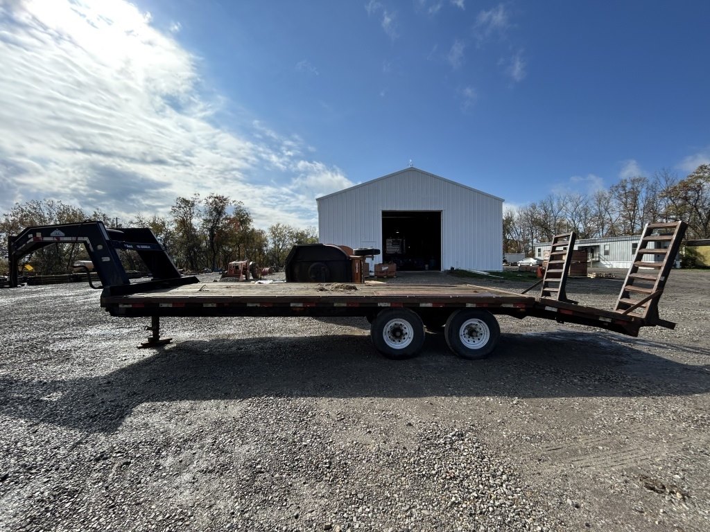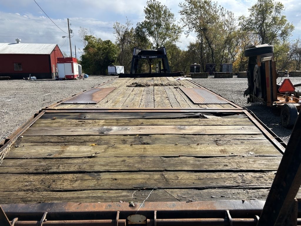 MORTZ 20FT FLAT TRAILER WITH 4FT DOVE TAIL, GOOSE NECK, HAS TITLE
