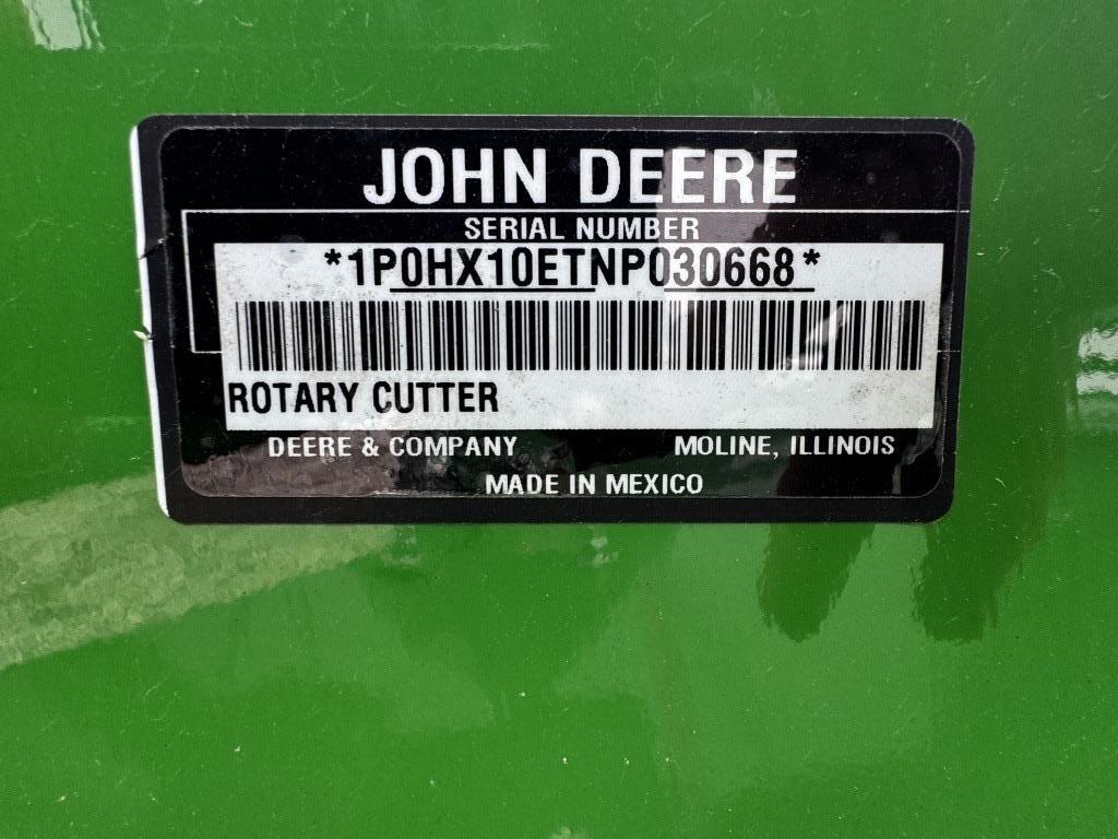 PULL TYPE JOHN DEERE 10′ BRUSH HOG MODEL HX10 SERIAL NUMBER 1P0HX10ETNP030668 OWNER REMARK USED FOR ROUGHLY 15 ACRES DECIDED TO GO A DIFFERENT ROUTE BASICALLY NEW