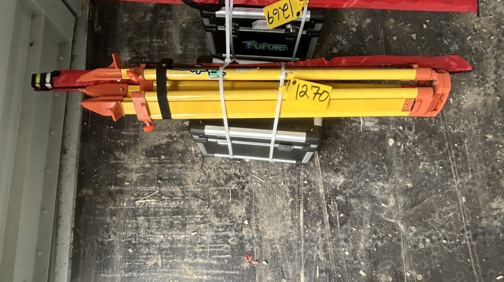 2025 FUTURE SELF LEVELING ROTARY LEVEL WITH BATTERIES, RECEIVER, TRIPOD, GRADE ROD