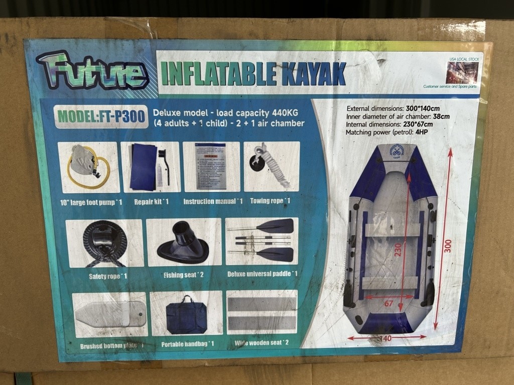 2025 FUTURE INFLATABLE KAYAK DELUXE MODEL, LOAD CAPACITY 440KG, HOLD 4 ADULTS +1 CHILD, MODEL FT-P300