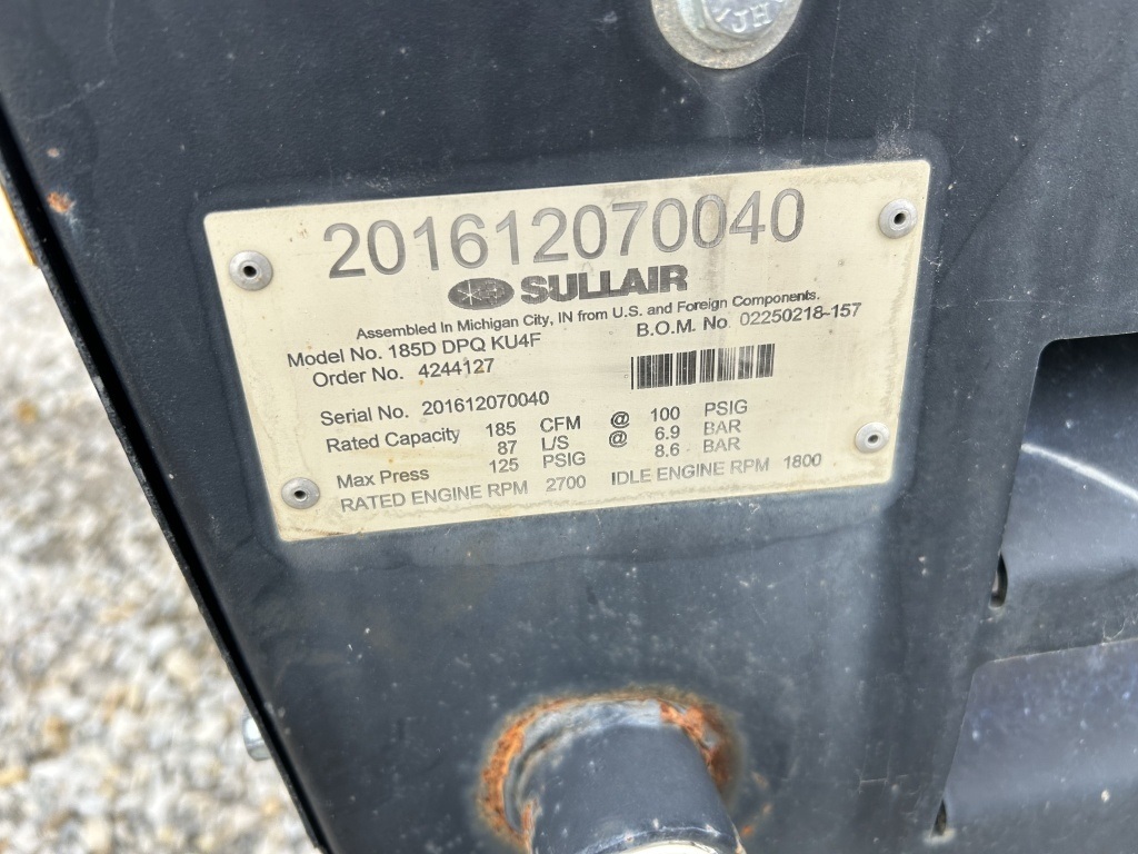 MODEL 185D DPQ KU4F SERIAL 20161612070040 MAX 125 PSIG
