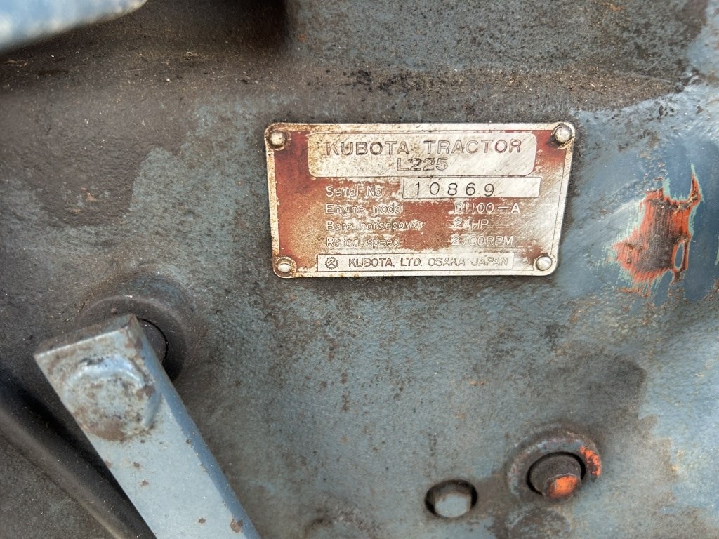 KUBOTA 225 DIESEL D1100-A, 24 HORSEPOWER, 2700 RPM, SERIAL # 10869, 1125 HOURS