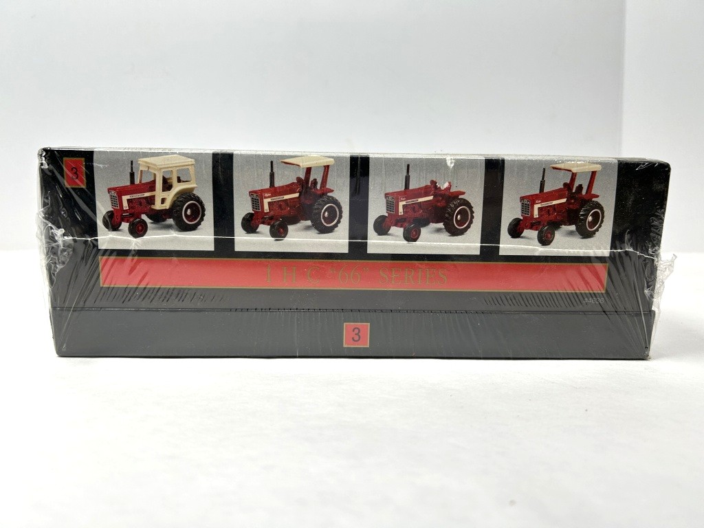 ERTL IHC INTERNATIONAL “66 SERIES 4 TRACTOR SET IN ORIGINAL PLASTIC WRAP NEVER OPENED INCLUDES 966 WITH 4 POST ROPS, 966 CUSTOM CAB, 1066 HYDRO, AND 1466 TURBO WITH CAB