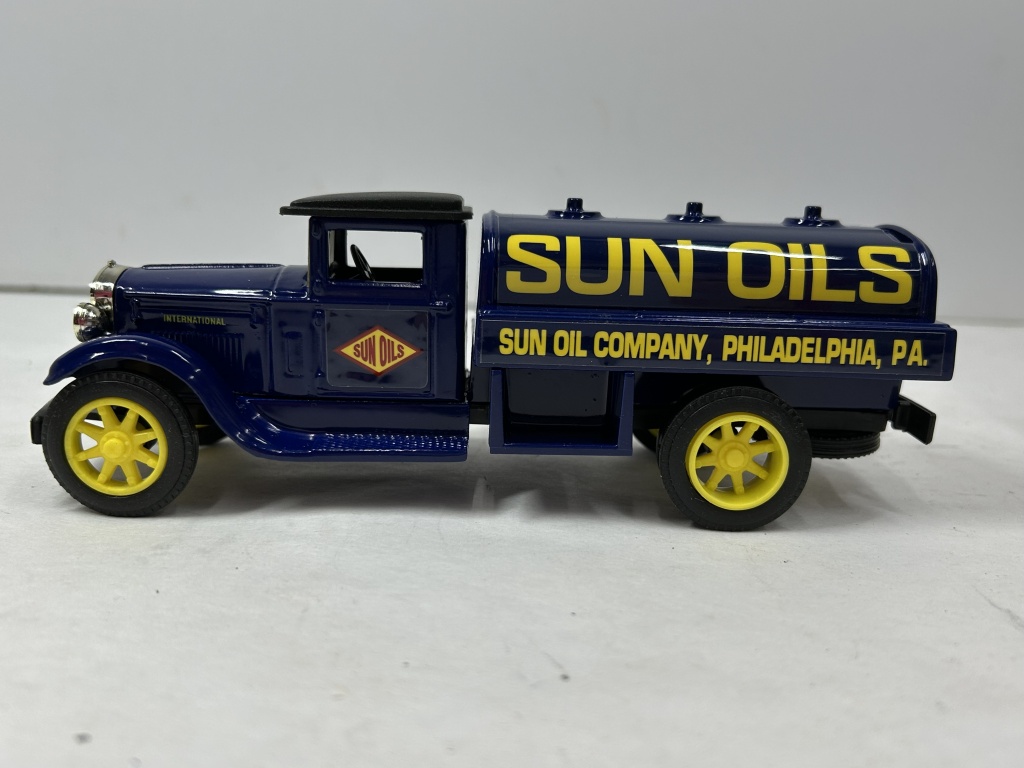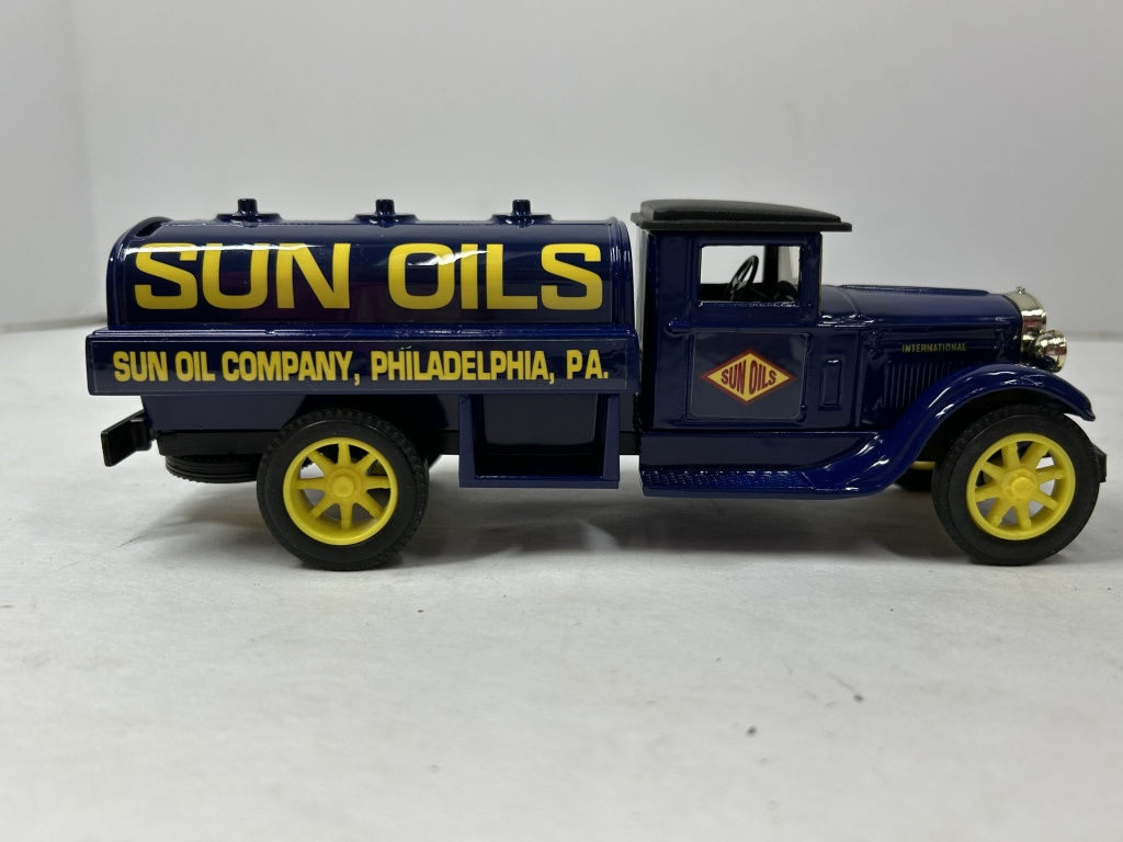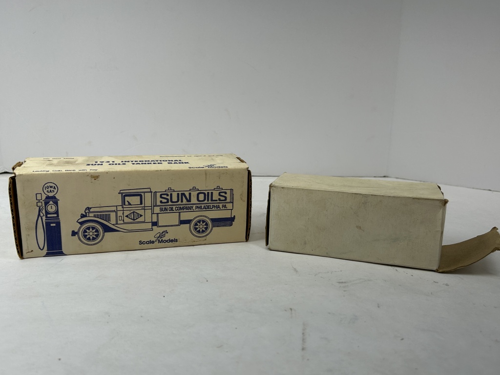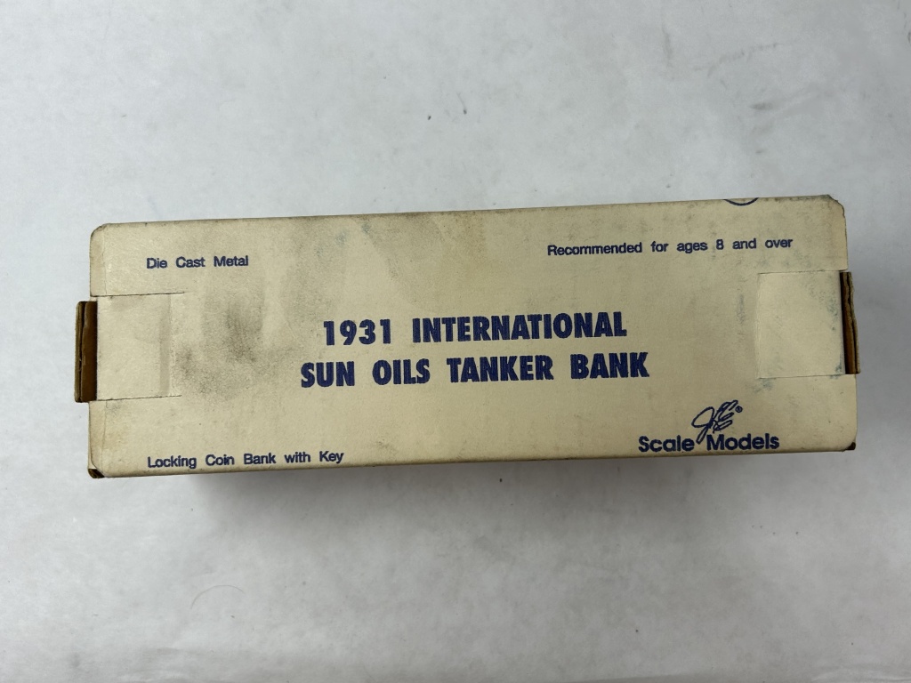 DIE CAST METAL LOCKING COIN BANK WITH KEY SUN OILS